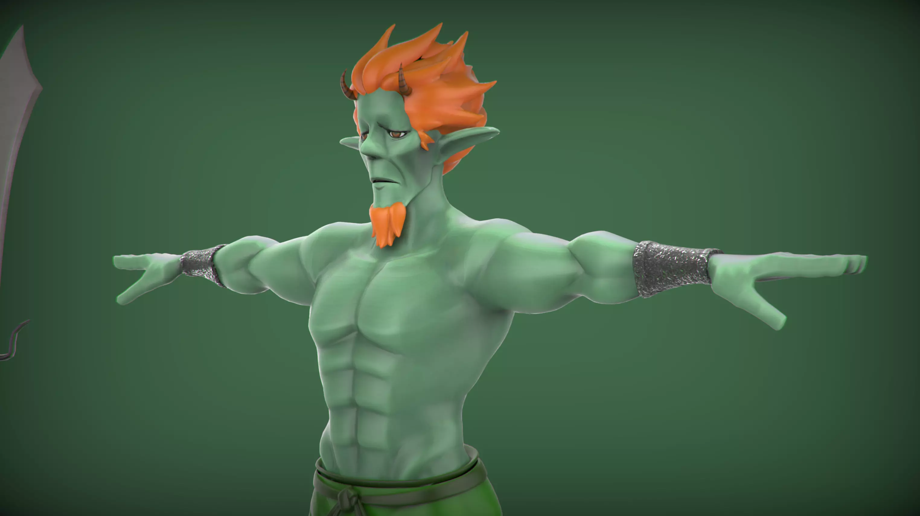 The model's limbs are proportionate and well-muscled, with each muscle group meticulously defined. His arms are sculpted, suggesting an impressive strength capable of wielding mighty weapons or performing acrobatic feats. His legs are equally well-built, implying remarkable speed and agility.