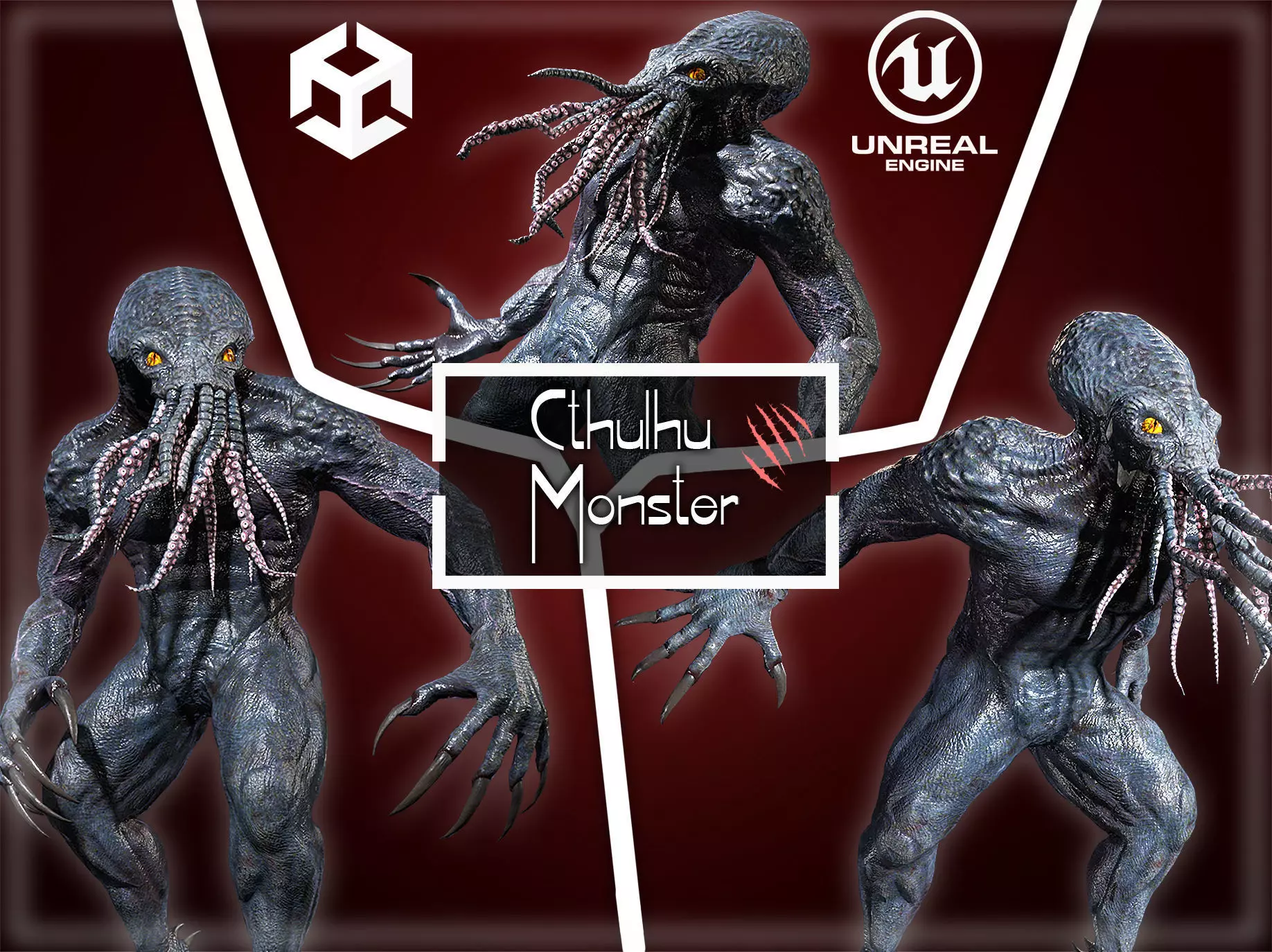 present to you a realistic monster with a pack of animations. This is a unique 3D monster model created for lovers of fantasy and science fiction. This monster combines elements of horror and mystery, attracting attention with its tentacles and unusual eyes.