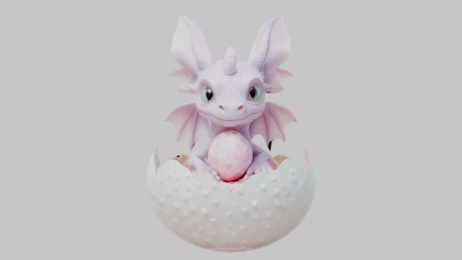 This is a cute 3D model of a baby dragon hatching from an egg. It is perfect for adding a touch of fantasy to your 3D scenes. The model is highly detailed and optimized for use in games and animations. You can use this model in a variety of projects, such as video games, animated movies, or even 3D printing. This adorable baby dragon is sure to bring a smile to anyone's face. Get this 3D model now and bring your imagination to life! This model is a high-quality asset ready to use in your projects. Whether you're creating a fantasy game, an animation, or just want to add a touch of whimsy to your creations, this baby dragon is the perfect choice. Download it today and start creating!