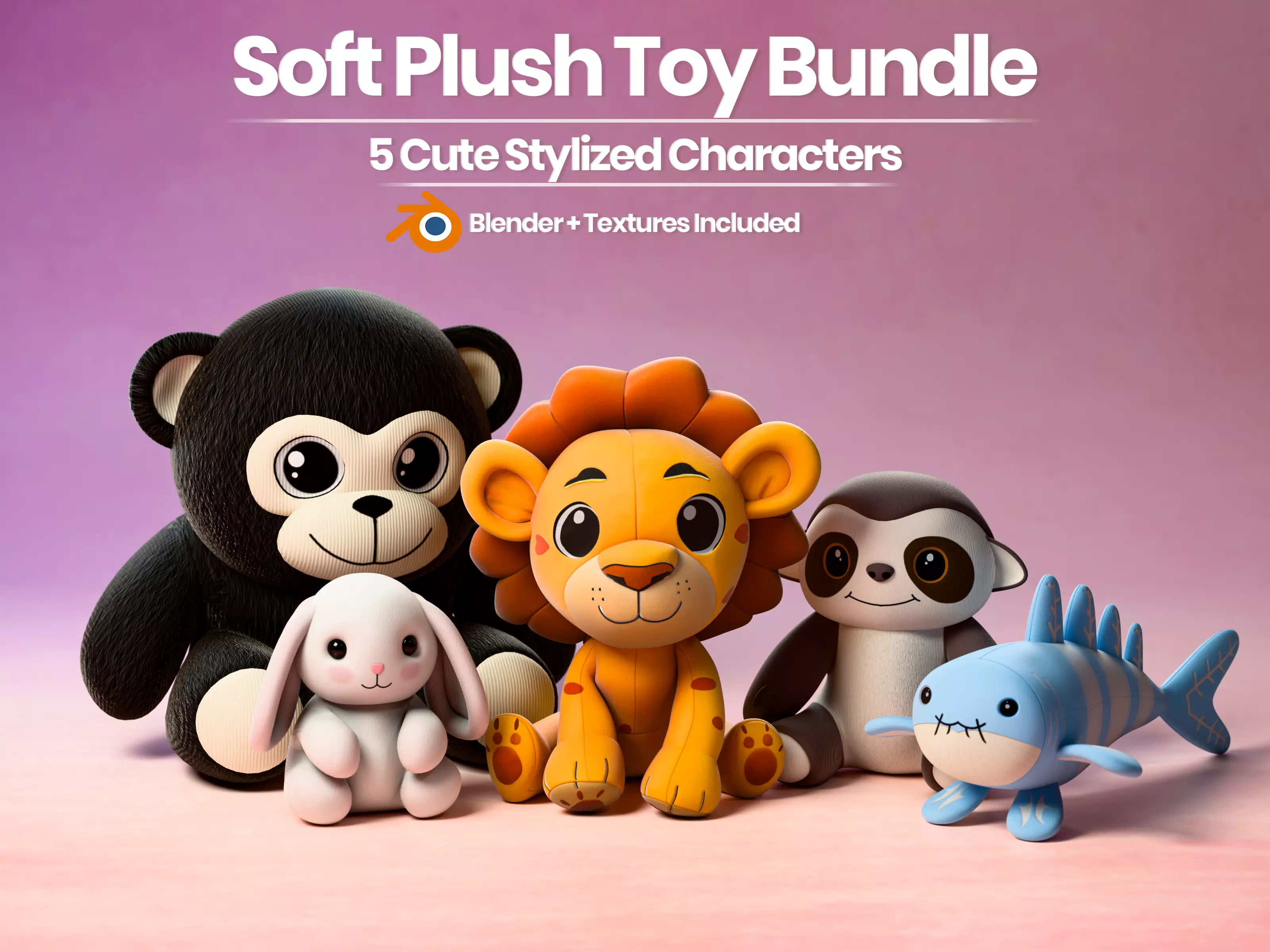 A high-quality pack of 5 cute stylized plush toy animal characters,perfect for games, animations, children apps, VR/AR projects, andcartoon renders. Each character has a soft stuffed toy aestheticwith clean topology and full PBR texturing.