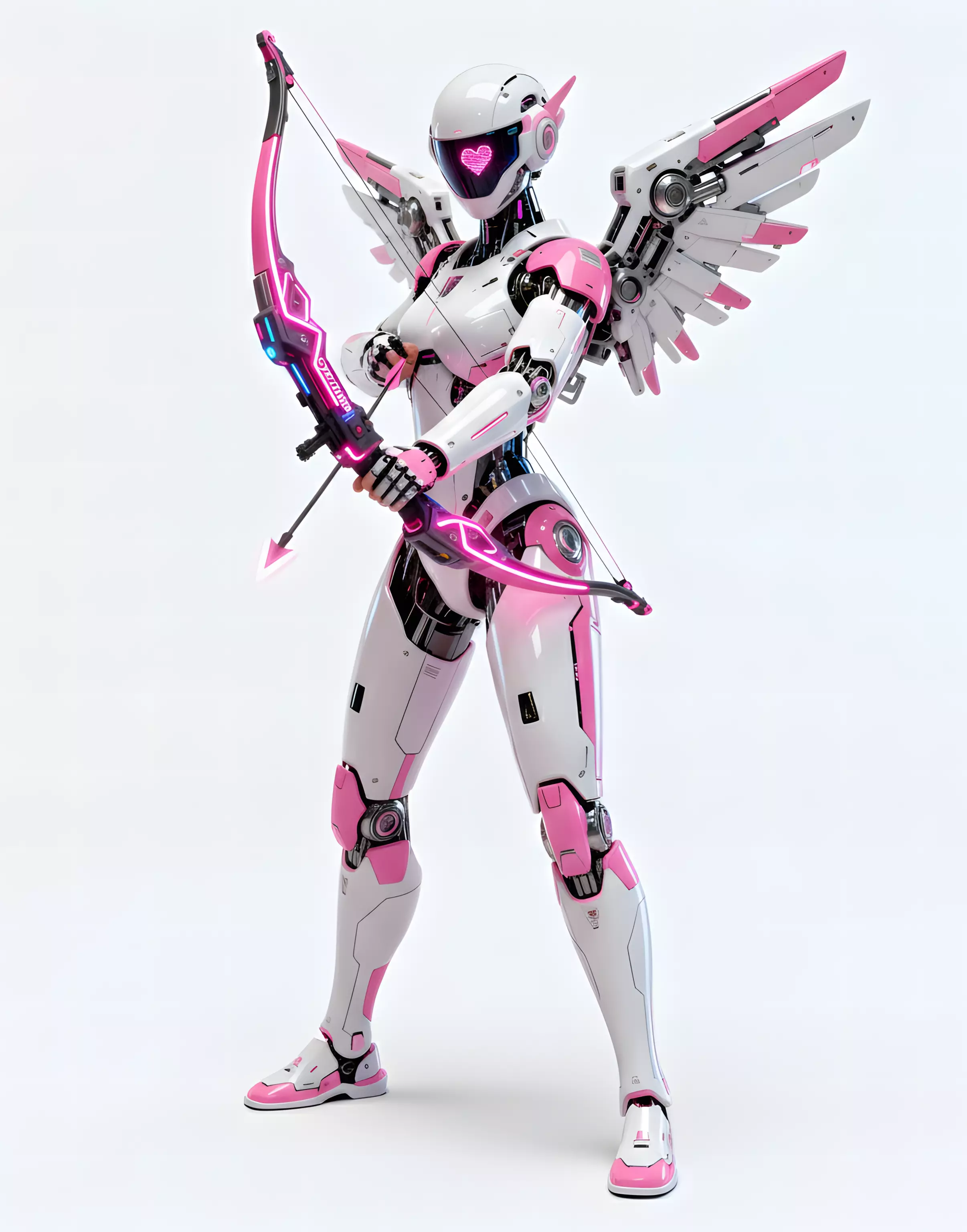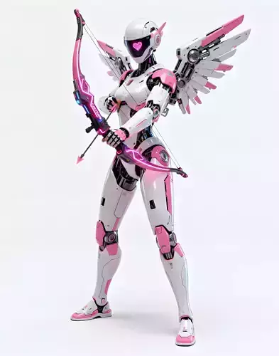 The Overall Concept This asset reimagines the god of love as a high-tech sci-fi soldier. It is a sleek female android designed as a Cyber-Cupid, perfect for a futuristic shooter game, a sci-fi RPG, or a unique Valentine's Day event skin.