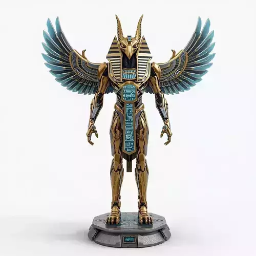 Tags3d model, cyber horus, egyptian deity, robotic falcon, game ready asset, futuristic guardian, gold and silver, neon wings, hieroglyphic glow, sci-fi temple, ancient future, mechanical god, armored npc, tactical droid, high-tech character, digital sculpture, hard surface, boss character, professional 3d asset