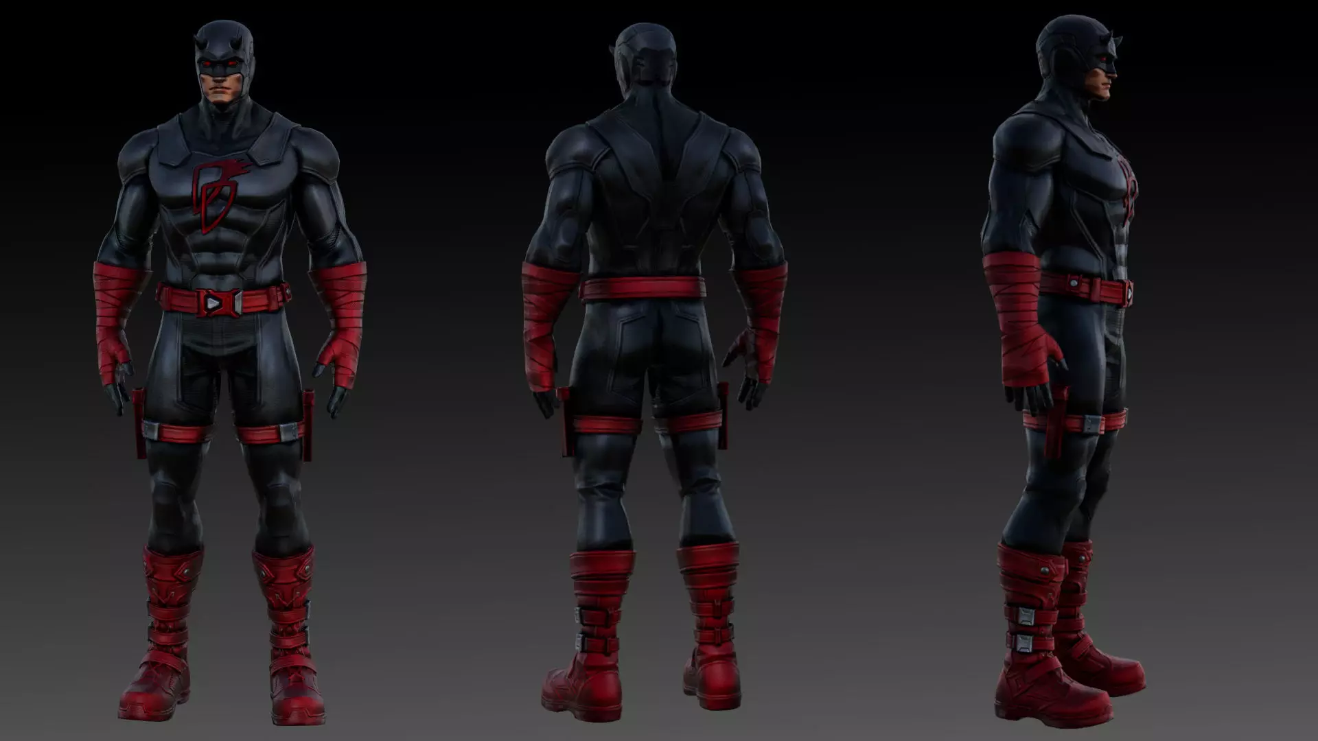Step into the dark world of Daredevil's Shadowland saga with this highly detailed 3D model inspired by the iconic black and red suit. Perfectly designed for games, animations, or cinematic projects.Features: