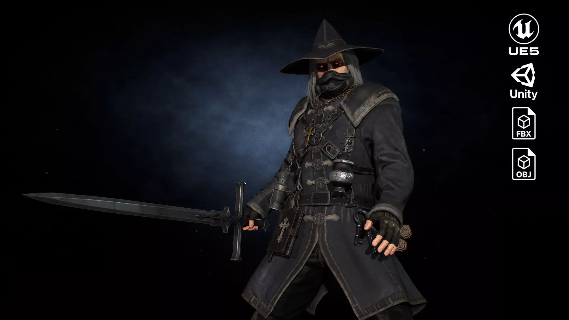 Perfect for horror, dark fantasy, souls-like, and medieval projects. The character features a strong and readable silhouette, making it suitable for both gameplay and cinematic use.