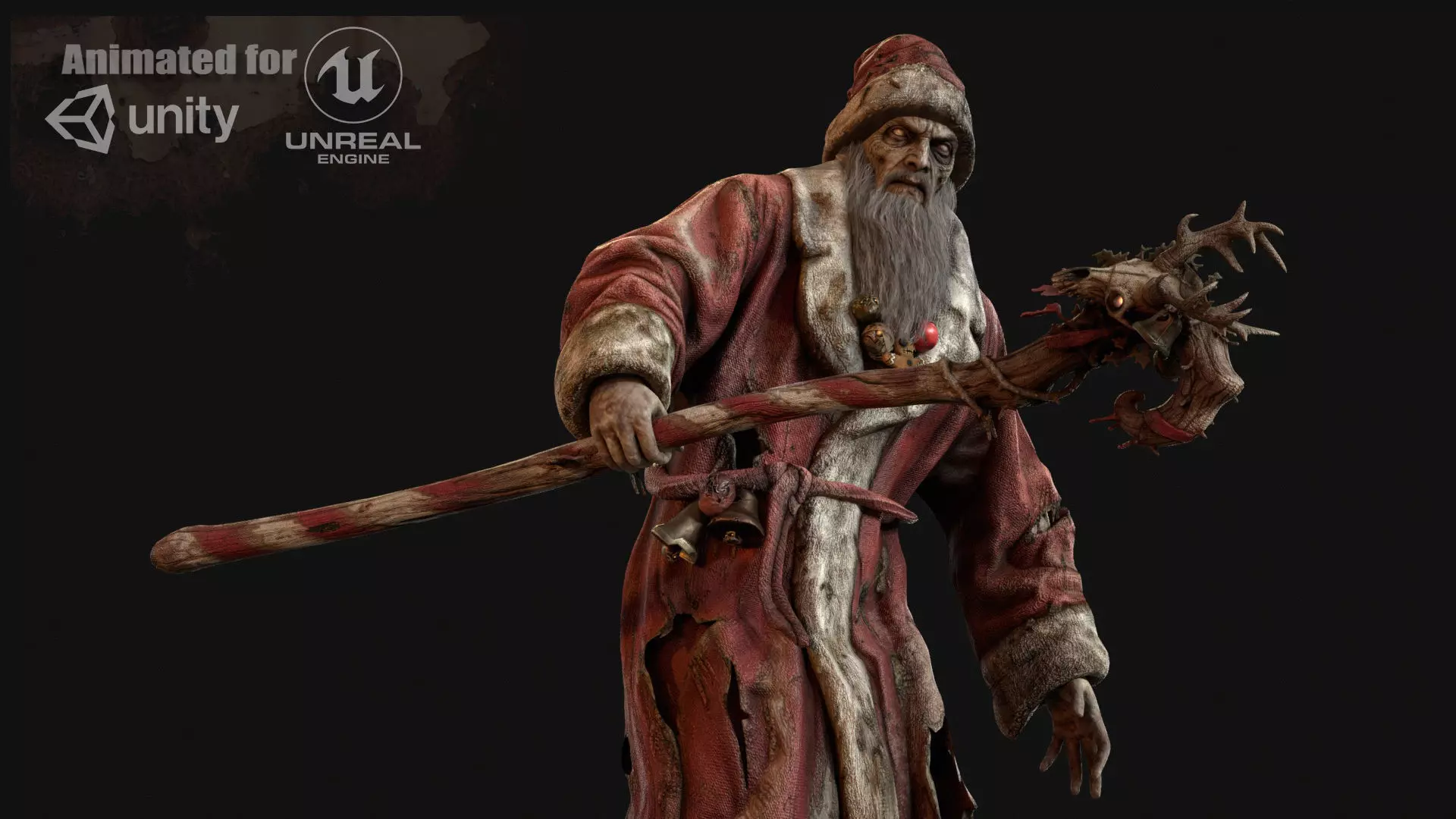 Low-poly model of the character Zombie ClausSuitable for games of different genre: RPG, strategy, first-person shooter, etc.In the archive, the basic mesh (fbx and maya)