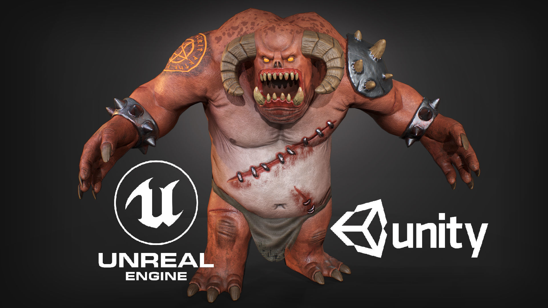 PBR textures, Metall - Rough. Body - 4096x4096. 8 Textures It be reduced without much loss of quality.It is desirable to use a shader with two-sided display of polygons in the model.The model contains 9 animations atack (x2) walking running (x1) idle (x2) death (x1) get hit (x1) battle roar(x1) a-pose(x1)