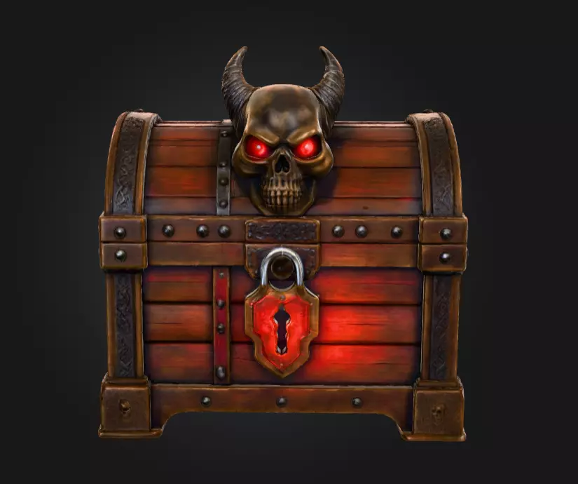 The Demonic Skull Treasure Chest is a dark fantasy 3D asset designed to captivate and intimidate. Crafted from rich, aged wood reinforced with heavy iron bands and rivets, this chest radiates an aura of mystery and danger. The centerpiece is a horned skull with glowing red eyes, a menacing guardian that suggests cursed riches or forbidden relics within. At its heart, a glowing crimson keyhole lock emits a supernatural light, enhancing the chest’s ominous presence.