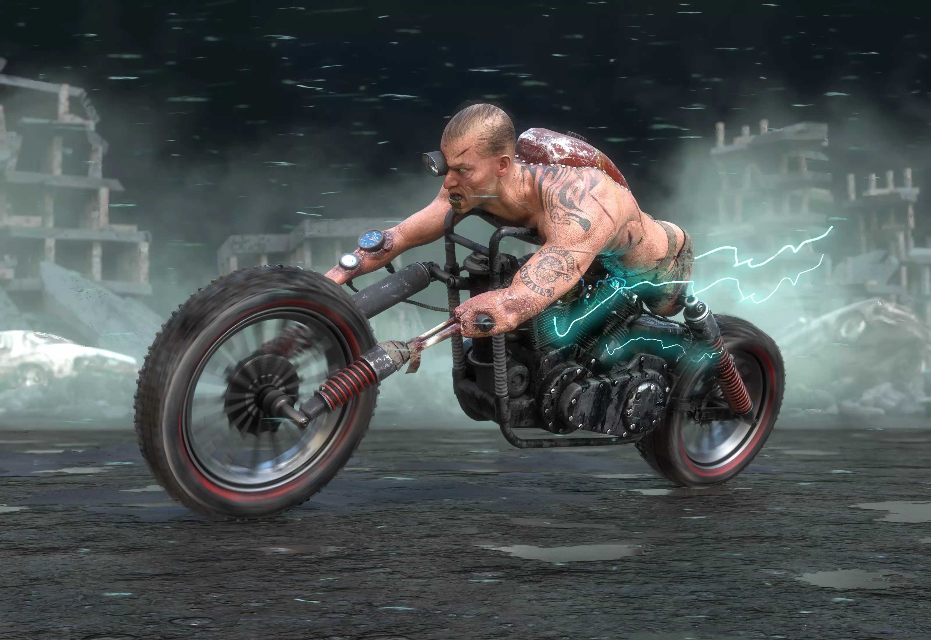 DieselPunk Rider Biker chopper Low-poly 3D model