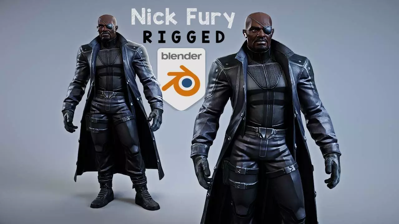 Nick Fury the director of shield rigged model made in Blender 2.8x with all parts are textured including normals. He also has a fully featured rig including face rig to make a easy animations.
