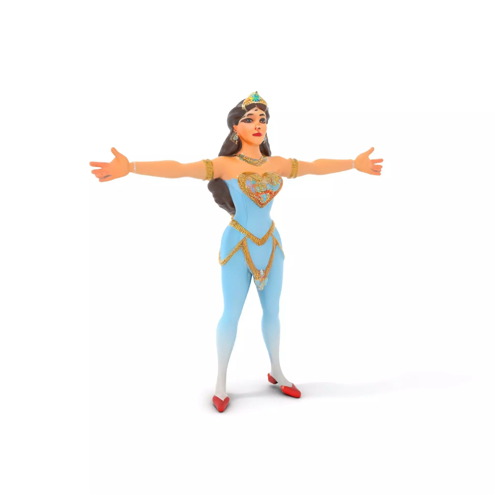 This elegant performer model pack features a detailed fantasy character designed with intricate accessories and a colorful costume. Each model has 3 levels of detail: low-poly (1000 triangles for mobile), middle-poly (10,000 triangles for environment), and high-poly (100,000 triangles), which allows for the use of this model in production rendering (such as 3ds Max, Maya, Cinema 4D, Blender, Vray/Corona/Cycles and others), game engines (Unity and Unreal compatible), and interactive presentations, providing a choice of detail based on the LOD System principle. This model is perfect for use in fantasy games, animated films, and virtual reality experiences. The model's textures are PBR, Diffuse, NormalMap, and reflection/roughness/metallic, which are suitable for any modern rendering engine. All models accurately unwrapped and have no overlapping UV. All textures are 4096*4096 in size. The first image is the reference used for creating the 3D model. It is important to carefully evaluate the quality of the model by examining the preview images that display the topology and polygonal mesh. These previews (WIRE and WEB 3D Preview) clearly demonstrate how accurately the model matches the original reference and how well the geometry has been executed. Please like and leave a comment for the model if you enjoyed it.