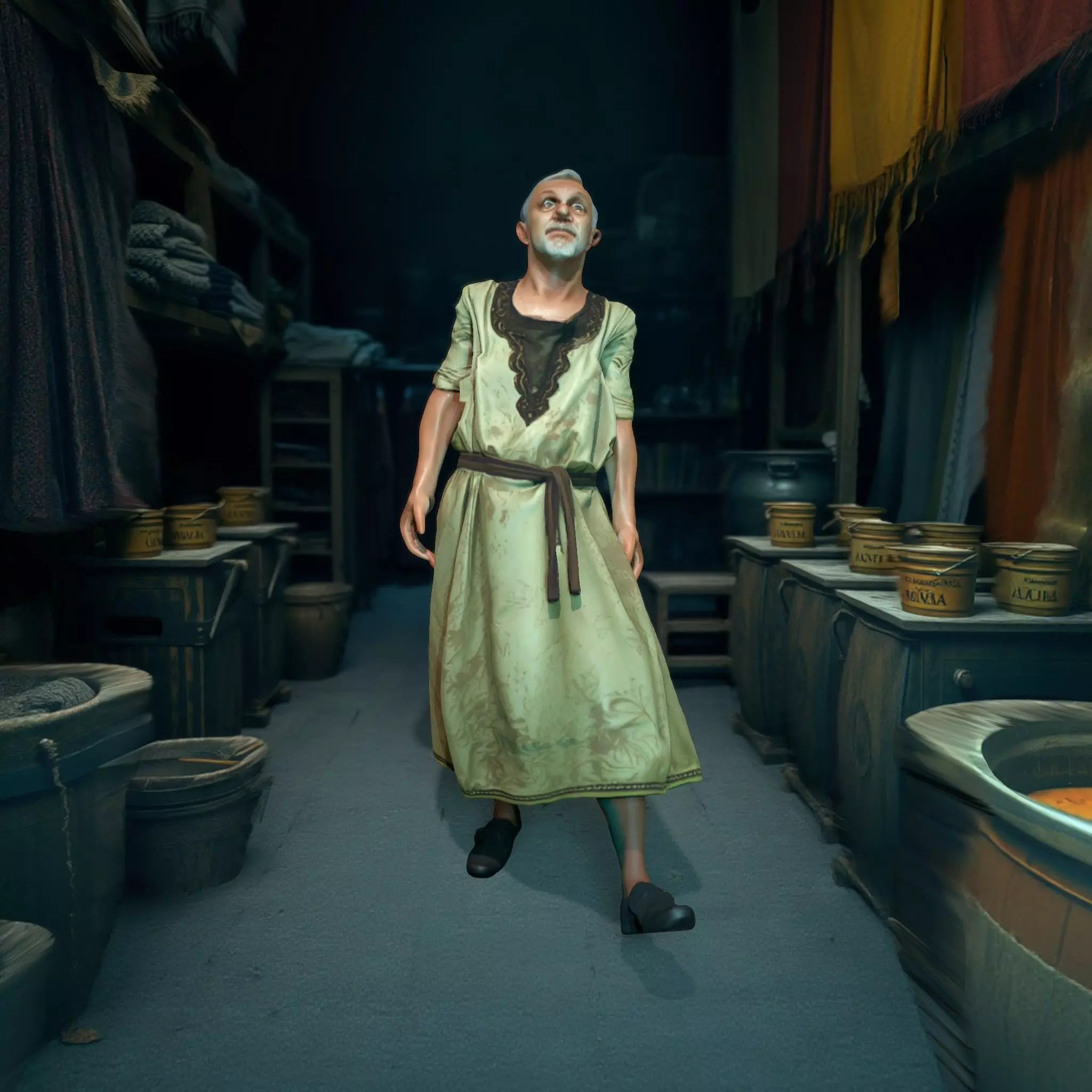 This 3D model features a figure wearing an elegantly designed robe, perfect for historical or fantasy settings. Each model has 3 levels of detail: low-poly (1000 triangles for mobile), middle-poly (10,000 triangles for environment), and high-poly (100,000 triangles), which allows for use in production rendering (such as 3ds Max, Maya, Cinema4D, Blender, Vray/Corona/Cycles), game engines (Unity and Unreal compatible), and interactive presentations, providing a choice of detail based on the LOD System principle. Ideal for use in historical reconstructions, educational projects, and immersive virtual environments, this model offers versatility and realism. The model's textures are PBR, Diffuse, NormalMap, and reflection/roughness/metallic, suitable for any modern rendering engine. All models accurately unwrapped with no overlapping UVs. All textures are 4096*4096 in size. Please like and leave a comment if you enjoyed the model!