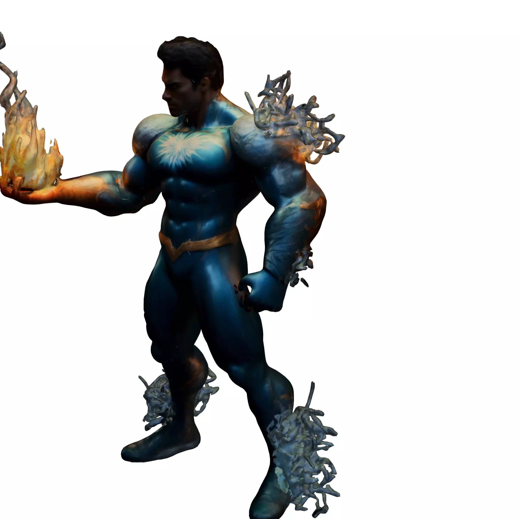 The Elemental Energy Warrior is a high-quality 3D model designed for use in video games, VR/AR environments, and animation projects. This powerful character features an ultra-muscular physique, glowing energy-infused armor, and fiery magical effects emanating from one hand. Ice-like crystalline formations enhance his dynamic, elemental appearance, making him a perfect addition to any fantasy or sci-fi setting.