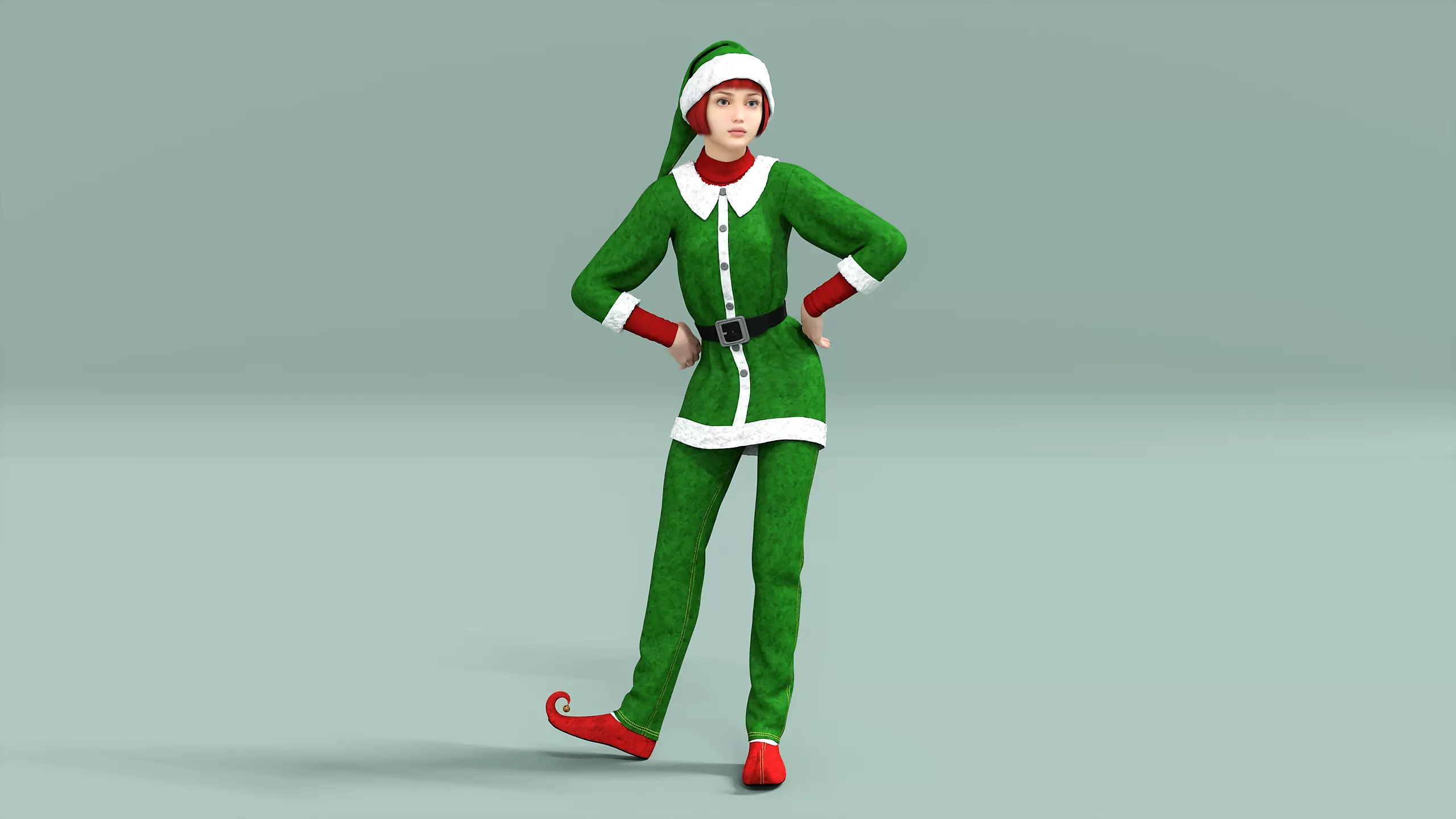In English-speaking cultures, a Christmas elf is a diminutive elf that lives with Santa Claus at the North Pole and acts as his helper. Christmas elves are usually depicted as green- or red-clad, with large, pointy ears and wearing pointy hats. They are most often depicted as humanoids, but sometimes as furry mammals with tails. Santa's elves are often said to make the toys in Santa's workshop and take care of his reindeer, among other tasks.