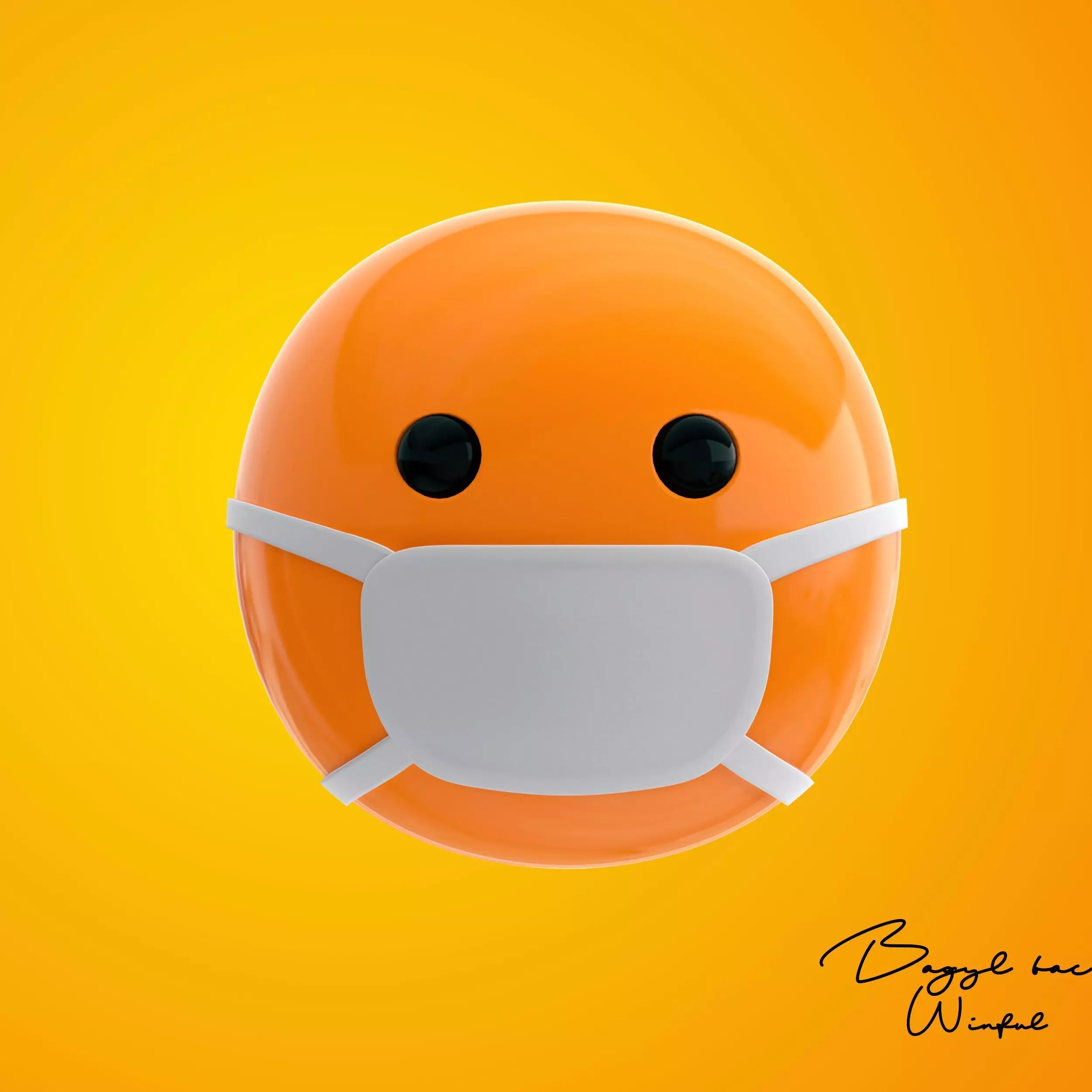 Emoji Face with Medical Mask Low-poly 3D model