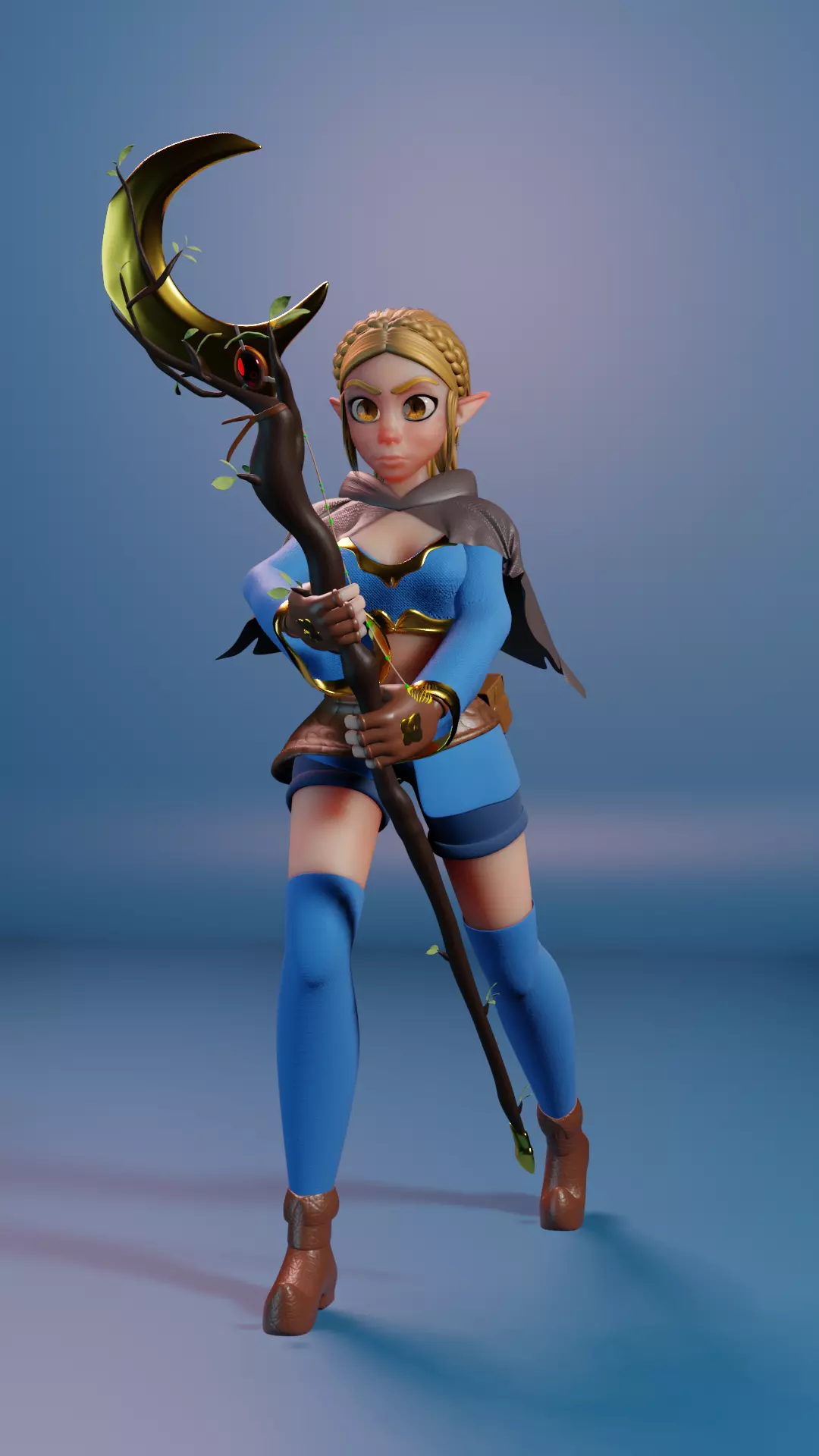Detailed Design: Immerse your audience in the mesmerizing details of our witch character, from the flowing blue robes to the intricately designed accessories.