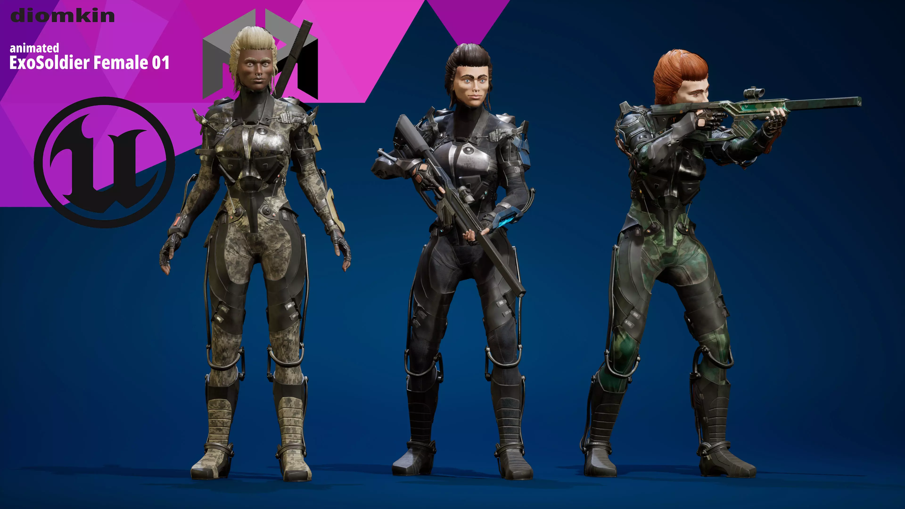 The model of ExoSoldier Female is perfect for shooter games, as well as strategy games, RPG etc.