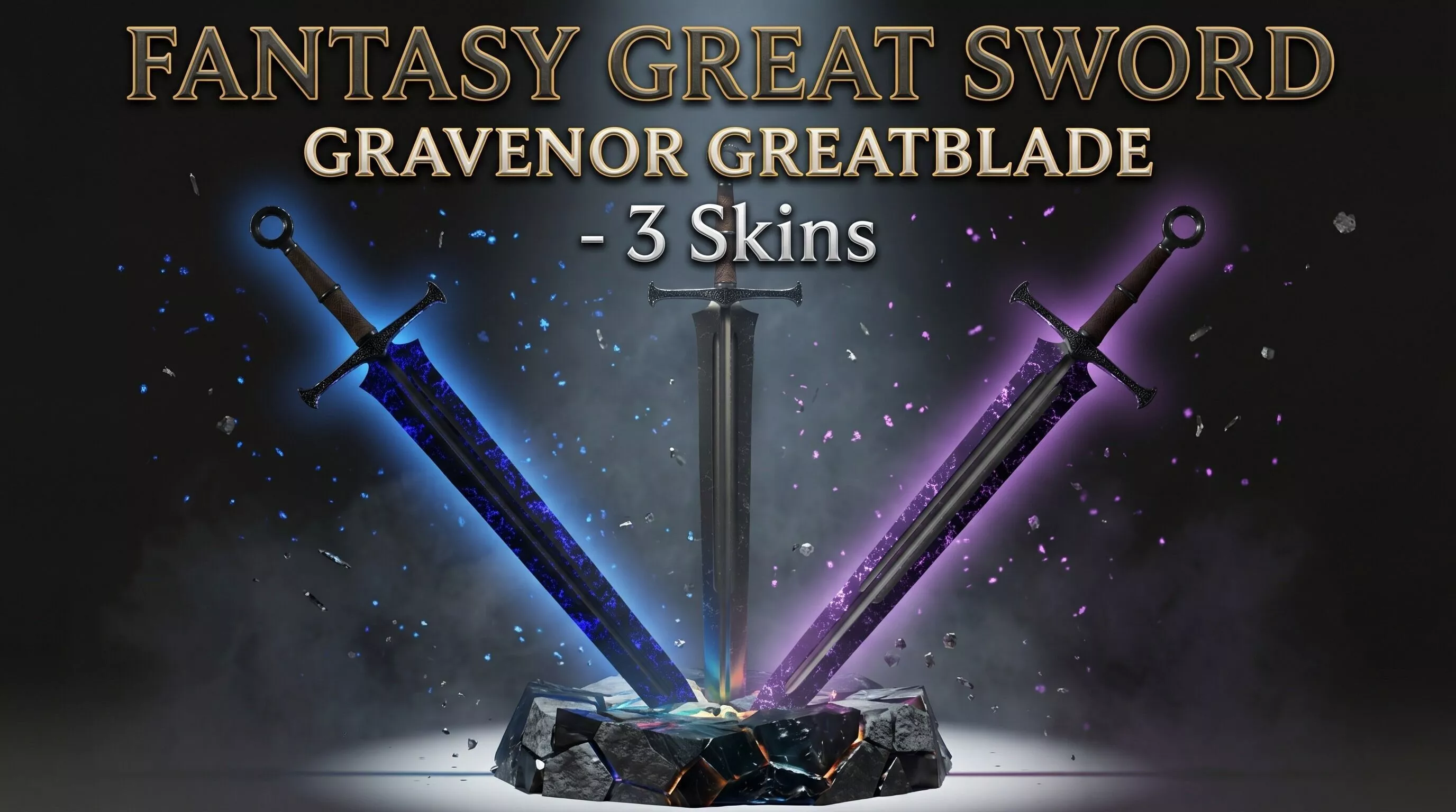 Unleash devastating heavy strikes with the Gravenor Greatblade, the first legendary weapon in our massive Fantasy Greatsword collection. Featuring a weighty two-handed design, an authentic ring pommel, and a fractured blade pulsating with magical energy, this AAA-quality asset includes 3 distinct, lore-rich skins.