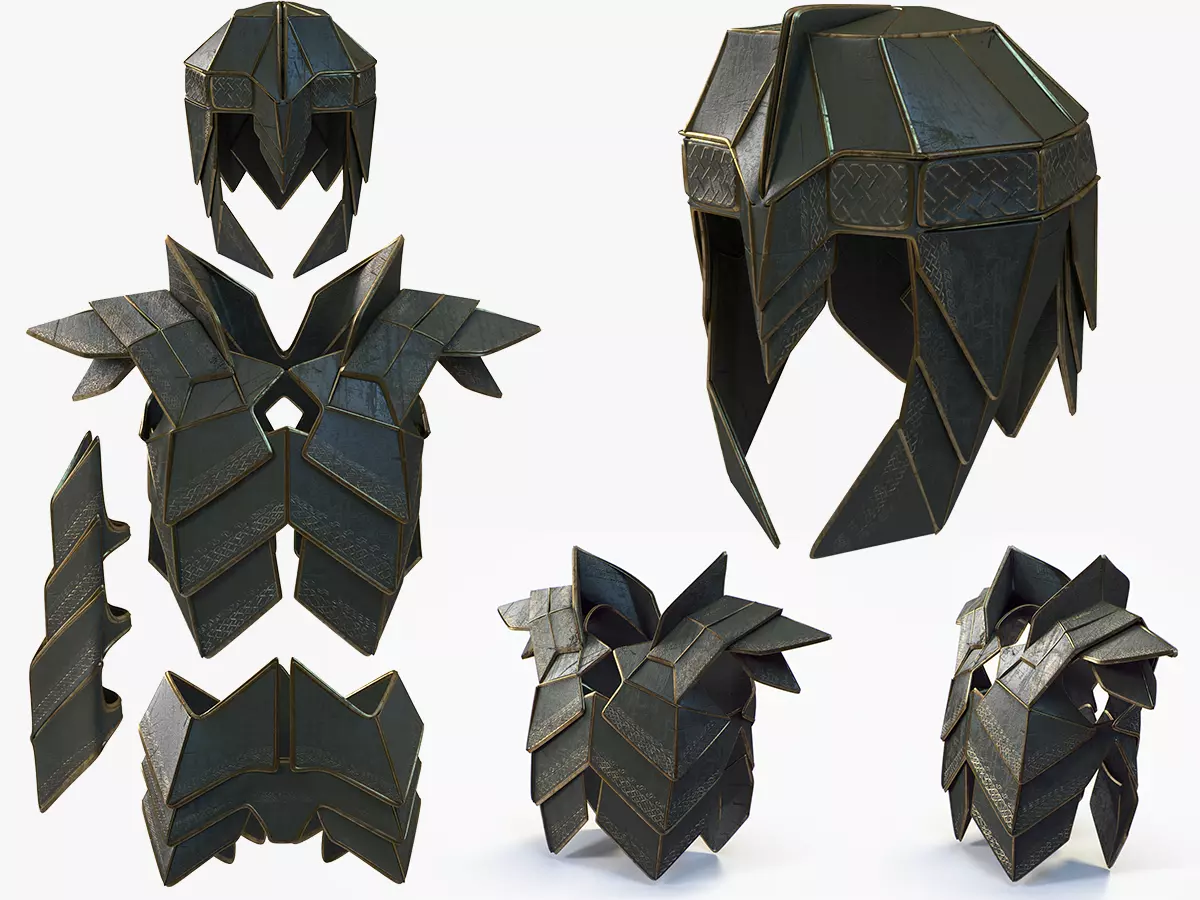 Fantasy Medieval Sharp Plated Armor set 3D model