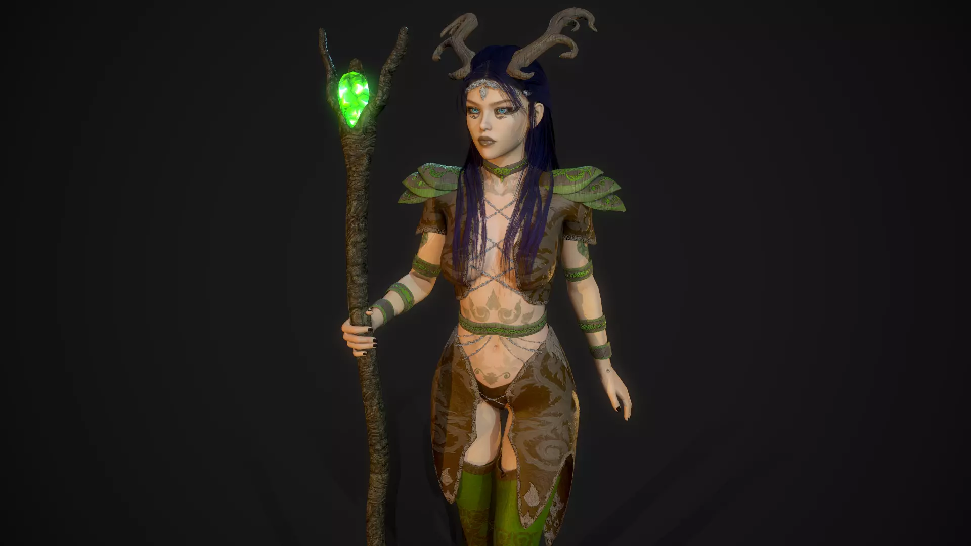 Forest Druid Girl - Game Ready Low-poly 3D model