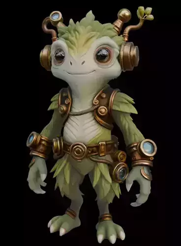 Meet the Leafborn Tinkerling, a beautifully crafted stylized creature designed to bring charm and personality to any creative project. This high-detail 3D model blends natural, plant-inspired features with whimsical steampunk craftsmanship. With its leafy textures, expressive face, polished brass mechanisms, and gemstone accents, it’s perfect for collectors, creators, and storytellers alike.