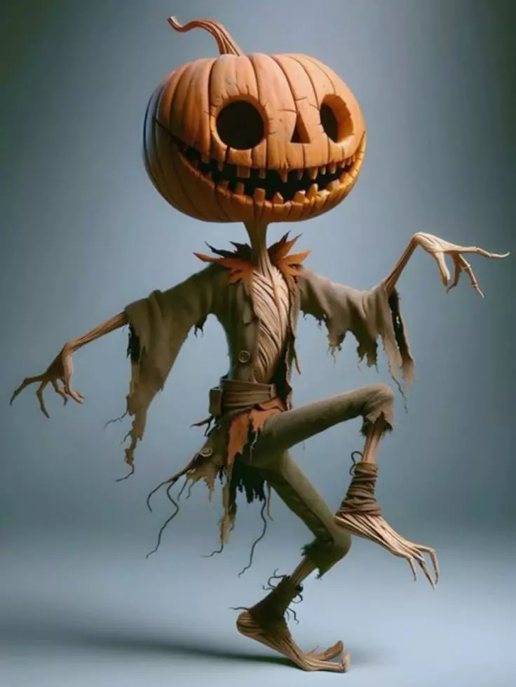 A main character in mobile games, animated shorts, or children’s apps with a dark-comedy twist.A brand mascot for Halloween-themed products, candy brands, or seasonal retail promotions targeting Gen Z and millennials.A social media hero for Instagram Reels, TikTok challenges, or YouTube thumbnails that need to grab attention with humor.A print-ready illustration for greeting cards, posters, party invitations, or merchandise (t-shirts, mugs, stickers).A VR/AR prop in virtual haunted houses, metaverse events, or interactive Halloween experiences where personality matters.Its design balances classic horror tropes with cartoonish absurdity, appealing to fans of “The Nightmare Before Christmas,” “Hotel Transylvania,” and “Halloween Town.” Unlike scary or generic scarecrows, this one is delightfully unhinged — its goofy pose and toothy grin make it instantly memorable and shareable.