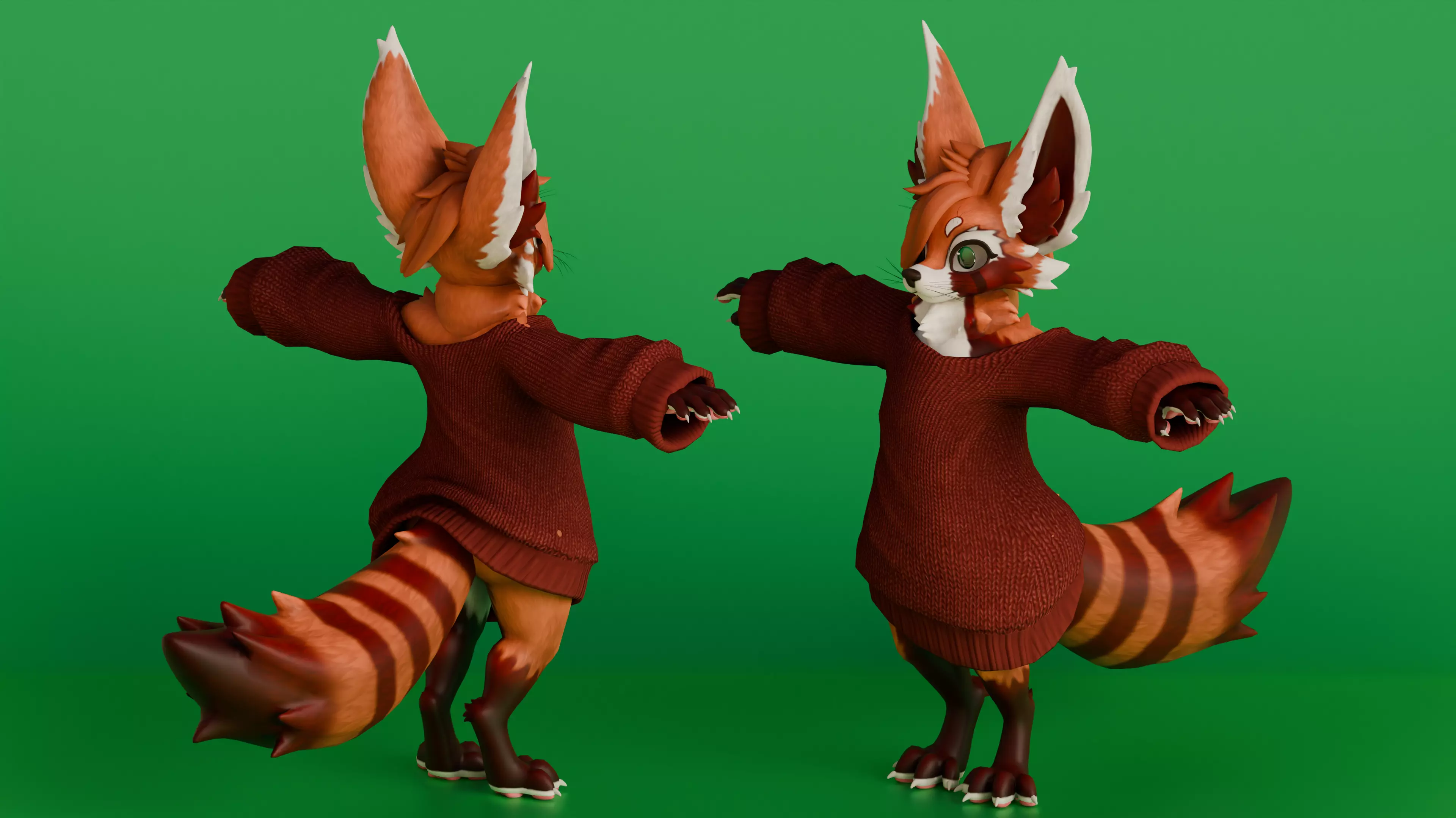Fuzzy Ember Is A Charming, Fully Rigged Red Panda 3D Character Designed For VRChat And VTubing Platforms. With Stylized Details, Expressive Eyes, And A Cozy Knit Sweater, This Avatar Brings Personality To Any Virtual World Or Streaming Environment. Optimized For Real-Time Use, It’s Ideal For VTubers, Streamers, And VRChat Enthusiasts Looking For A Unique, Furry Companion.