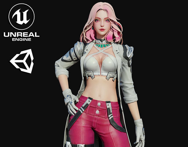 Beautiful low-poly character in 3d model rigged ready for applications in real-time.Sculpting models ZBrush and rigging in 3ds Max.