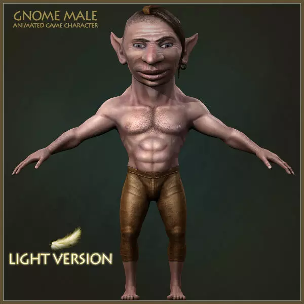 Low polygonal game ready animated model of Gnome Male Worker in 3D Max file version 2009.