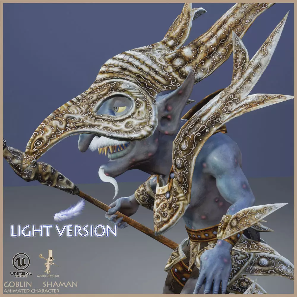 Low polygonal game ready animated model of Goblin Shaman in 3D Max file version 2009.