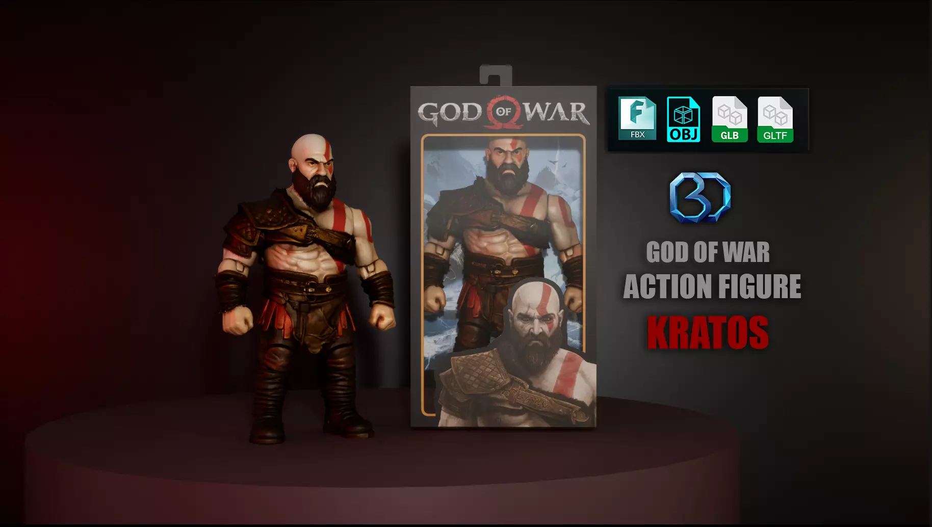 Featuring fine muscular definition, battle-worn skin textures, and accurate outfit details, the model reflects Kratos' strength and rage. The character’s facial expression is intense yet controlled, staying true to his brutal yet disciplined persona. Signature elements such as the scar, beard, and tribal markings have been carefully crafted for authenticity.