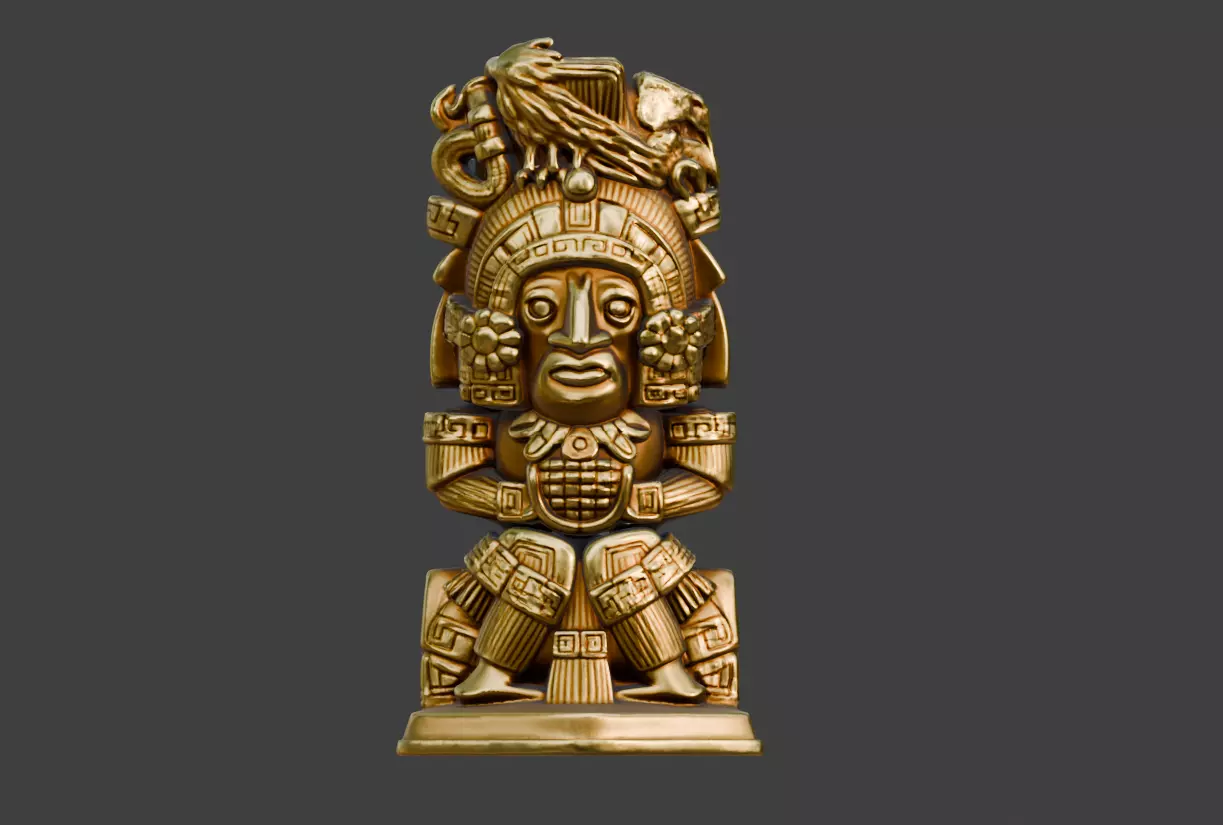 The form of the statue is deliberate and ceremonial. Whether representing a god, ruler, or mythic guardian, its posture is dignified and composed, suggesting eternal watchfulness rather than motion. Intricate carvings and ornamental details—such as engraved patterns, symbolic motifs, and stylized anatomy—speak to advanced craftsmanship and cultural sophistication. Subtle surface wear, tarnish, and micro-scratches imply long-term exposure to the elements, rituals, and human contact, grounding the asset in believable history.