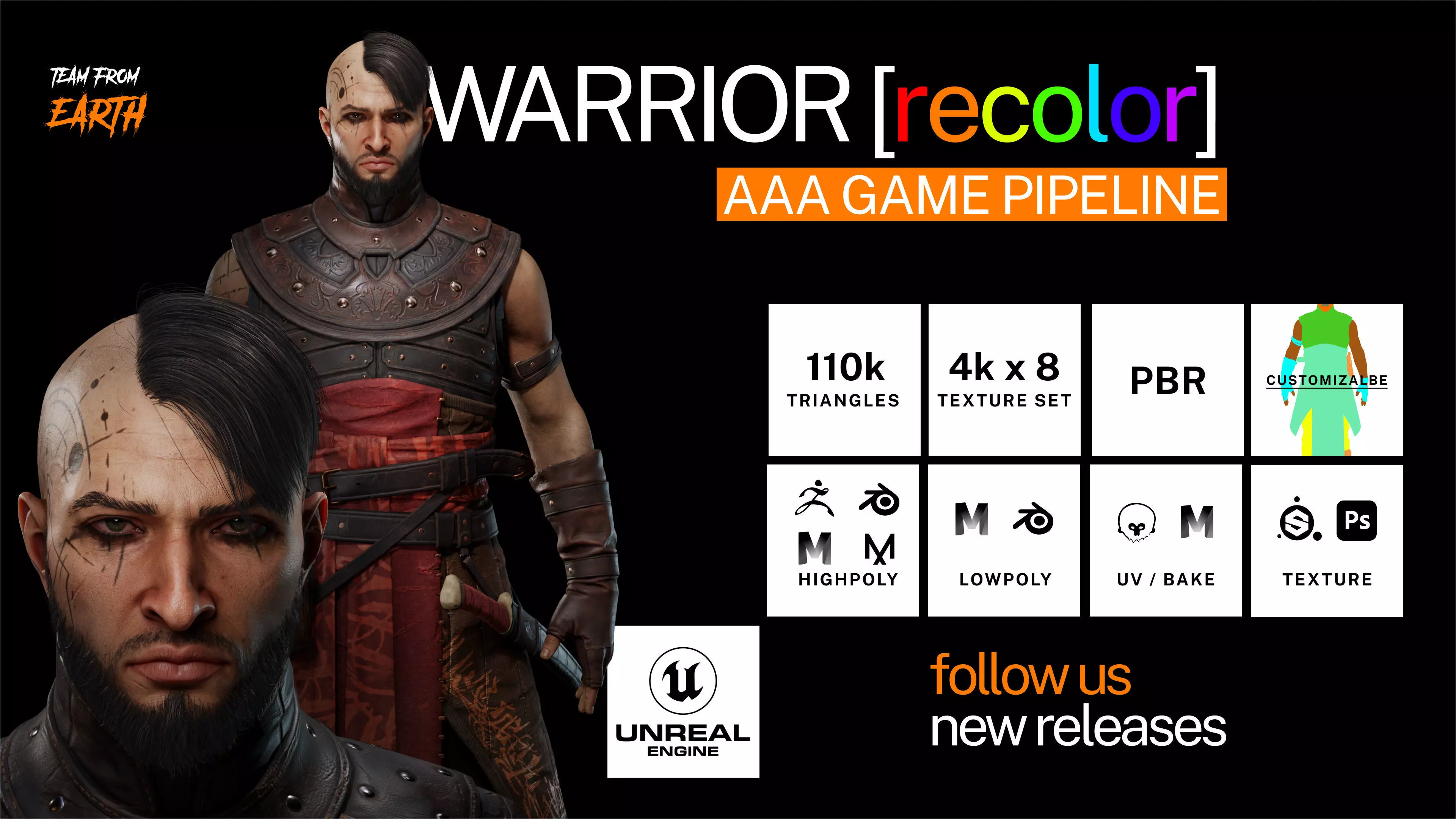 Real-time game ready 3D Character in a role of Soldier, Sergeant, guard, classy fighter. Not rigged and skinned,Ideal for rpg game. Based on the Team from Earth concept art: https://www.cgtrader.com/gallery/project/eastern-warrior-concept-artPerfectly works with for Unreal engine 5 and Unreal engine 4.