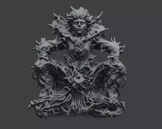 Surface detail plays a central role in the storytelling. Twisting root-like structures, bark textures, and organic tendrils surround the figure, creating a sense of constant, living motion frozen in time. The asymmetry and complexity of the form give the model a sculptural quality that feels both natural and otherworldly. This makes the asset equally suitable as a living entity, a dormant guardian statue, or a summoned nature spirit.