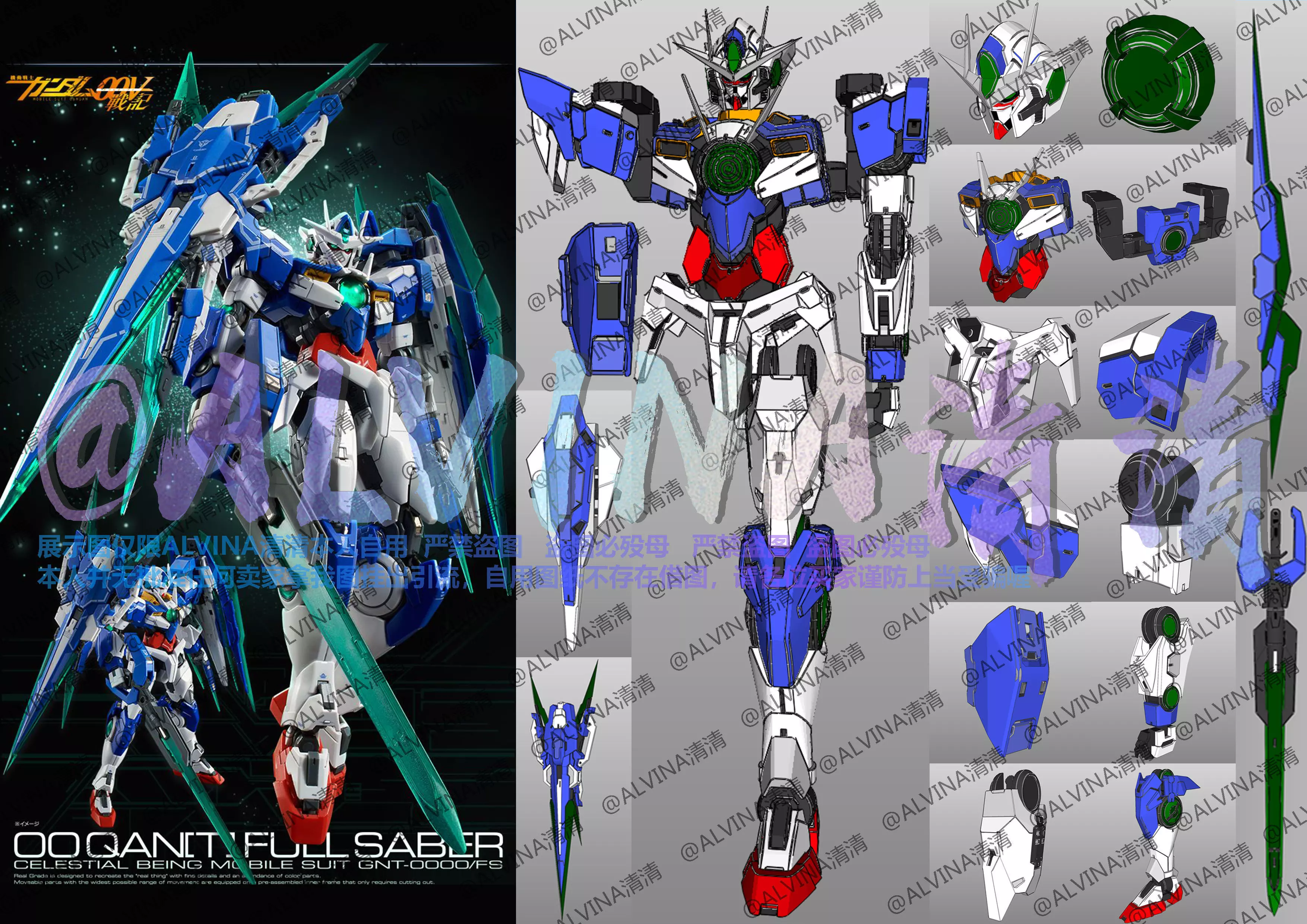 GUNDAM EXIA 00Qan Armor - DIY Cosplay Pepakura Foam Template, PDO file is not encrypted! After decompression, you can freely adjust the size and modify the texture!