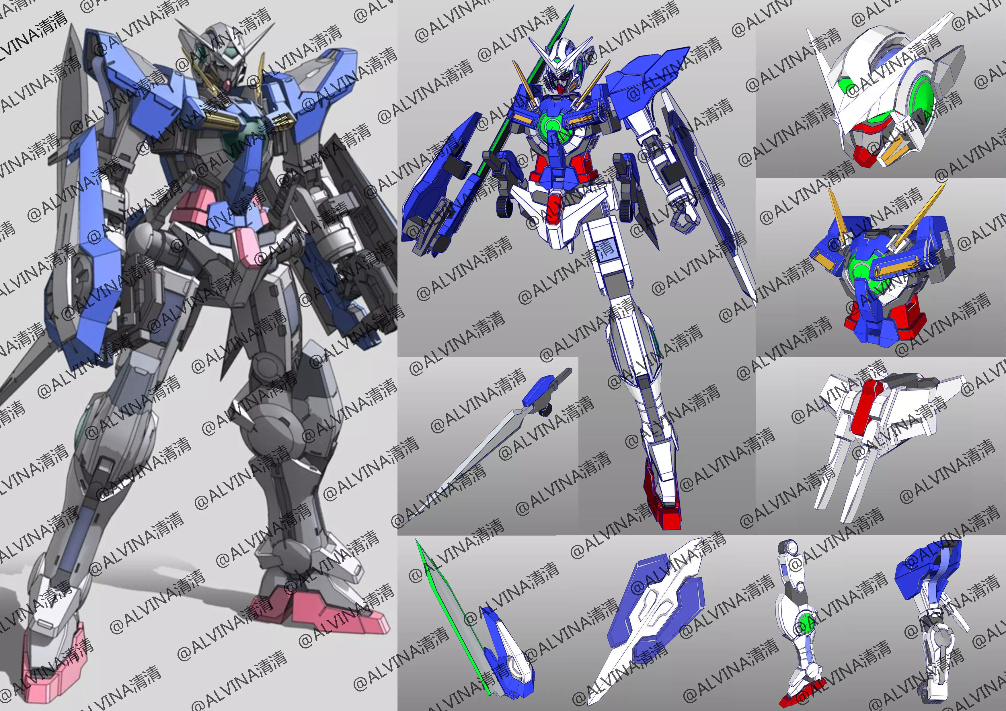 GUNDAM EXIA Armor - DIY Cosplay Pepakura Foam Template, PDO file not encrypted! After decompression, you can freely adjust the size and modify the texture!