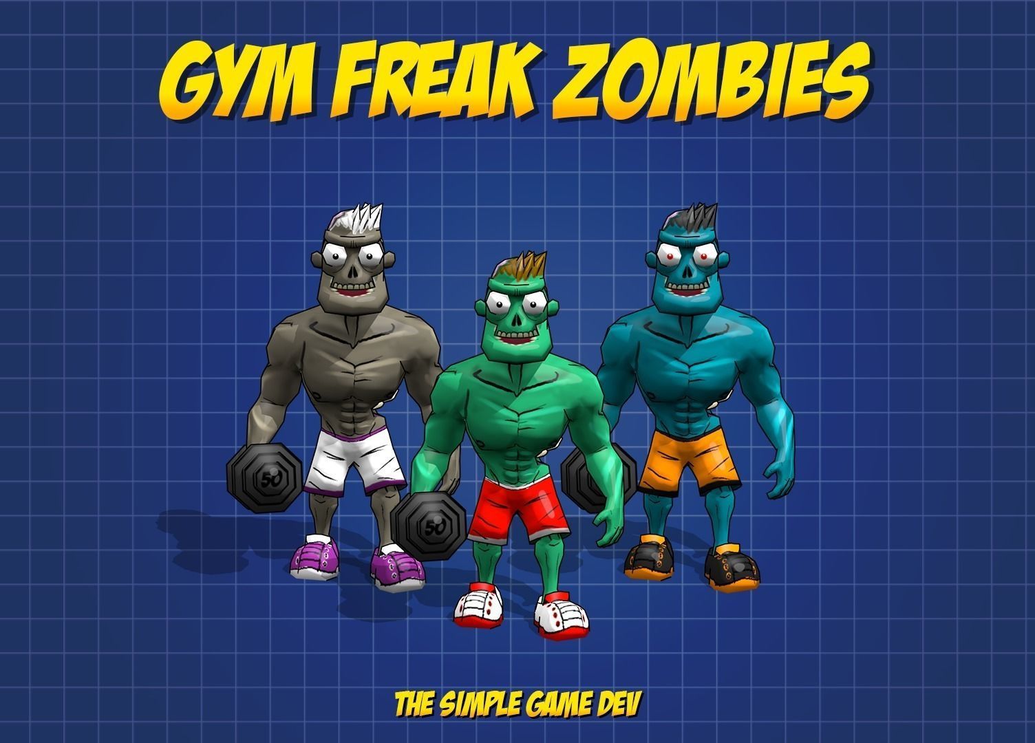 Low Poly Gym Freak Zombie for your games and animations. This huge bulky dude is ready to destroy everything and everyone that stands between him and some delicious protein filled brains.