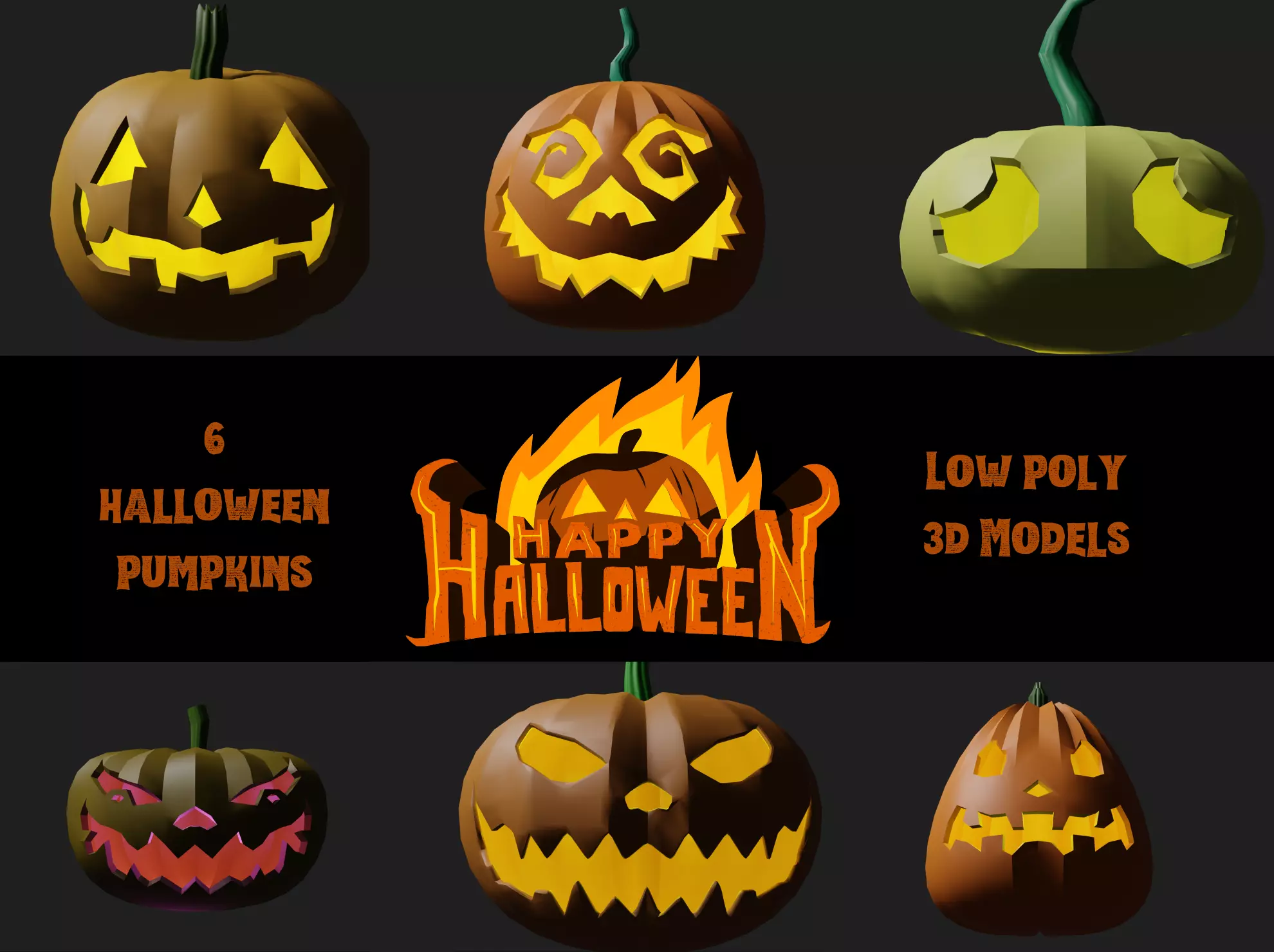 Created in Blender /Low poly /6 lanterns /Less than 2000 polygons for each pumpkin /No textures included
