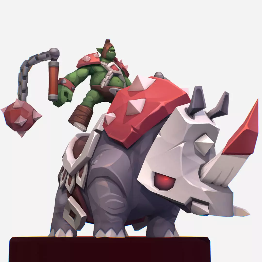 • Handpaint game LowPoly 3d model Cartoon Goblin Rino Mount MMO Character
