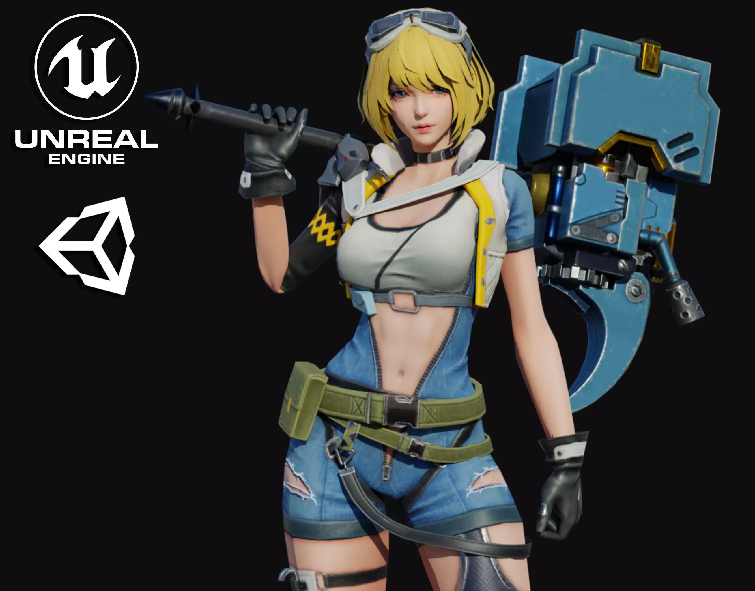 Beautiful low-poly character in 3d model rigged ready for applications in real-time.Sculpting models ZBrush and rigging in 3ds Max.