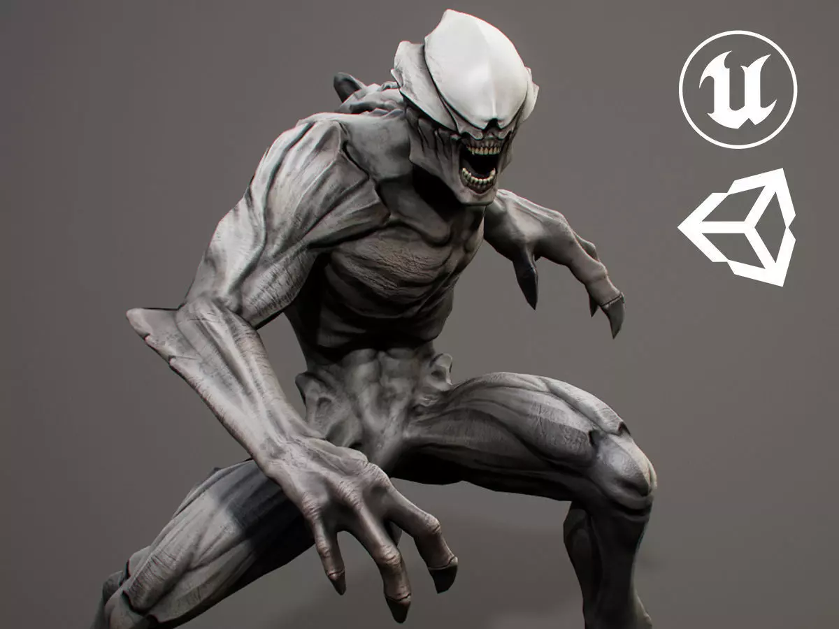 Horror Demon Beast low-poly animated character. This model will fit perfectly as a hostile NPC in FPS Action, Horror or any other game genre. Model comes with 3 skins and all necessary animations such as idles, all direction movements, attacks, getting damage, death and others!