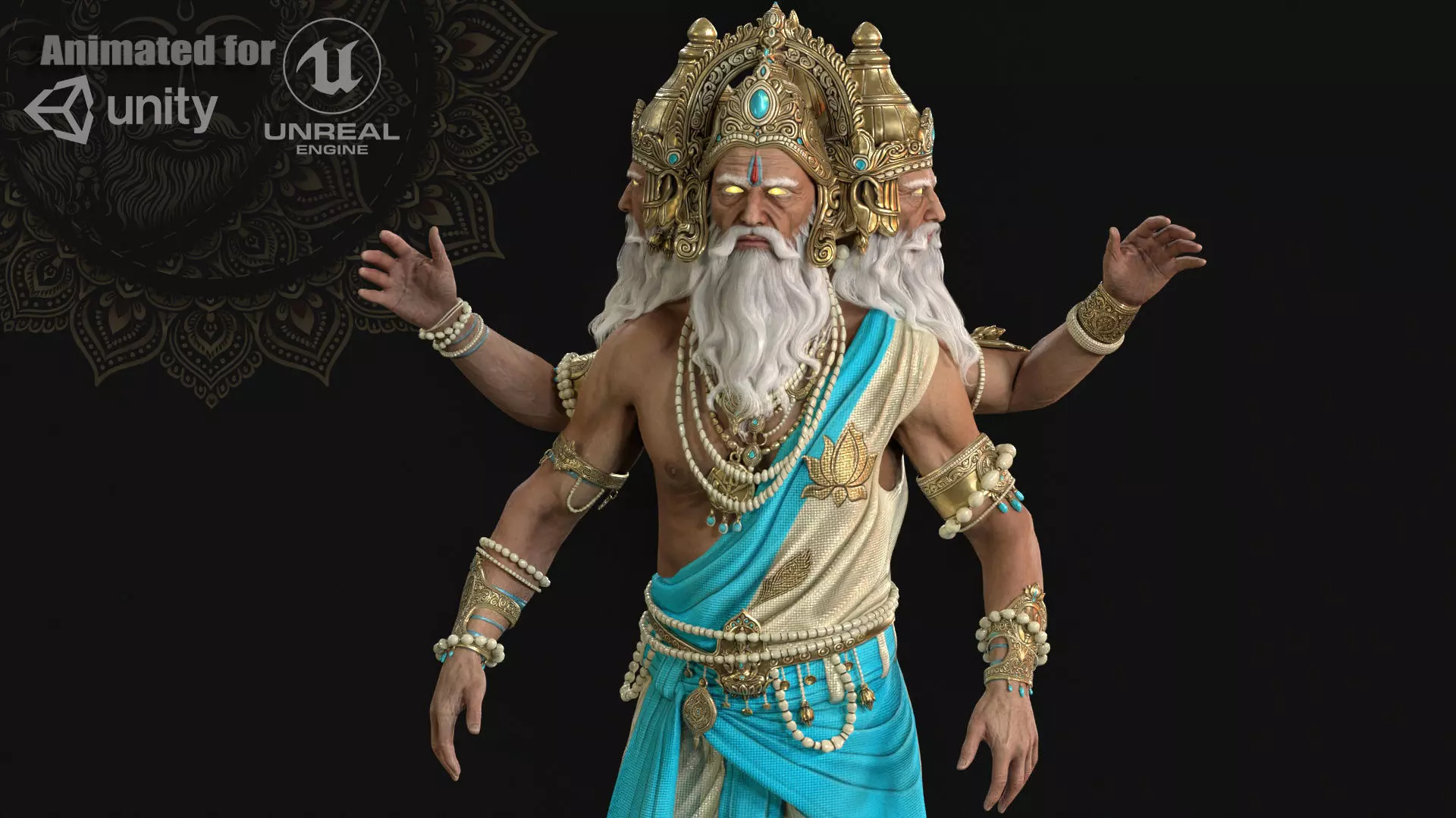 • Low-poly model of the character Indian God Brahma