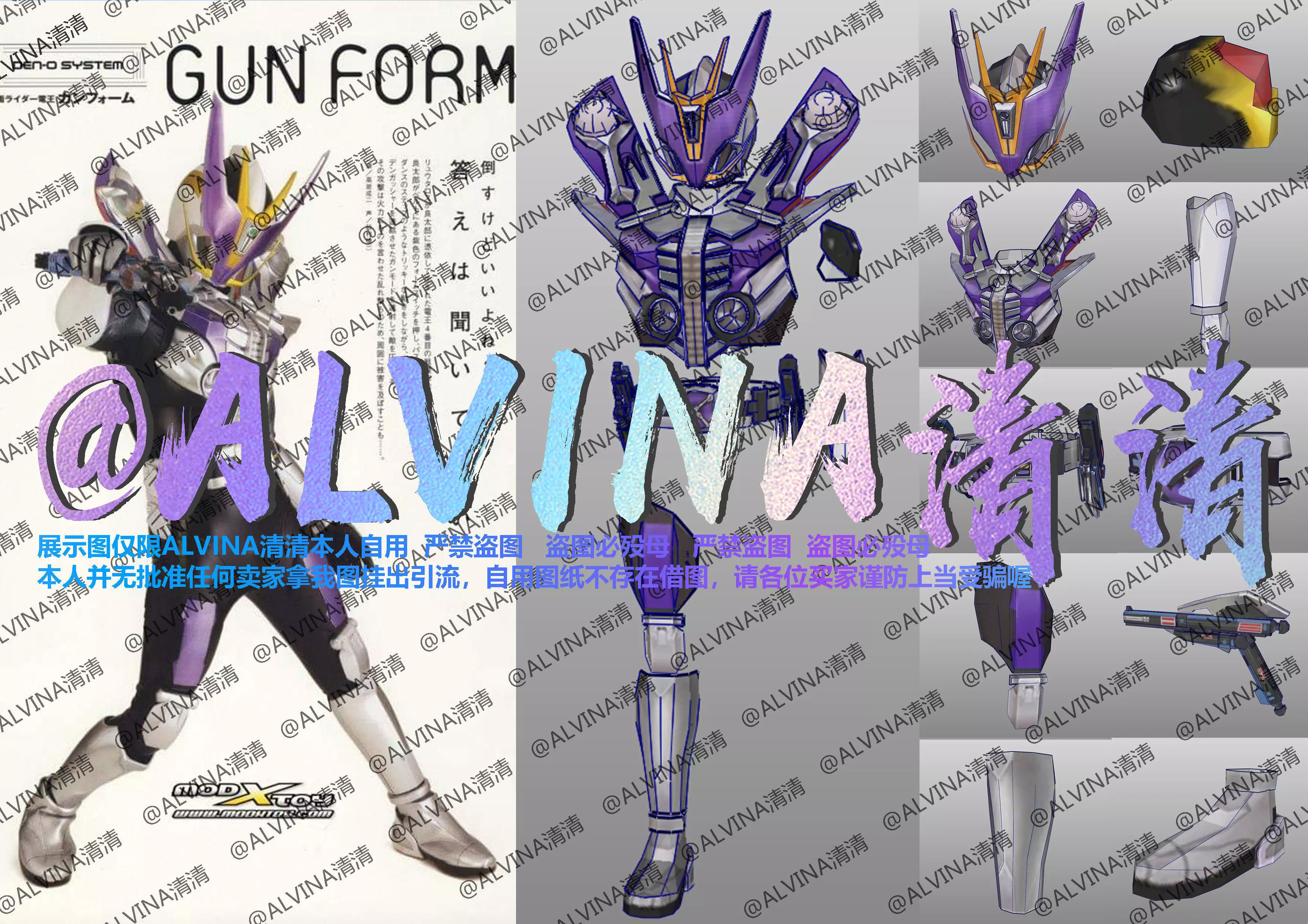 Kamen Rider Den-O Gun Form Armor - DIY Cosplay Pepakura Foam Template, PDO file not encrypted! After decompression, you can freely adjust the size and modify the texture!