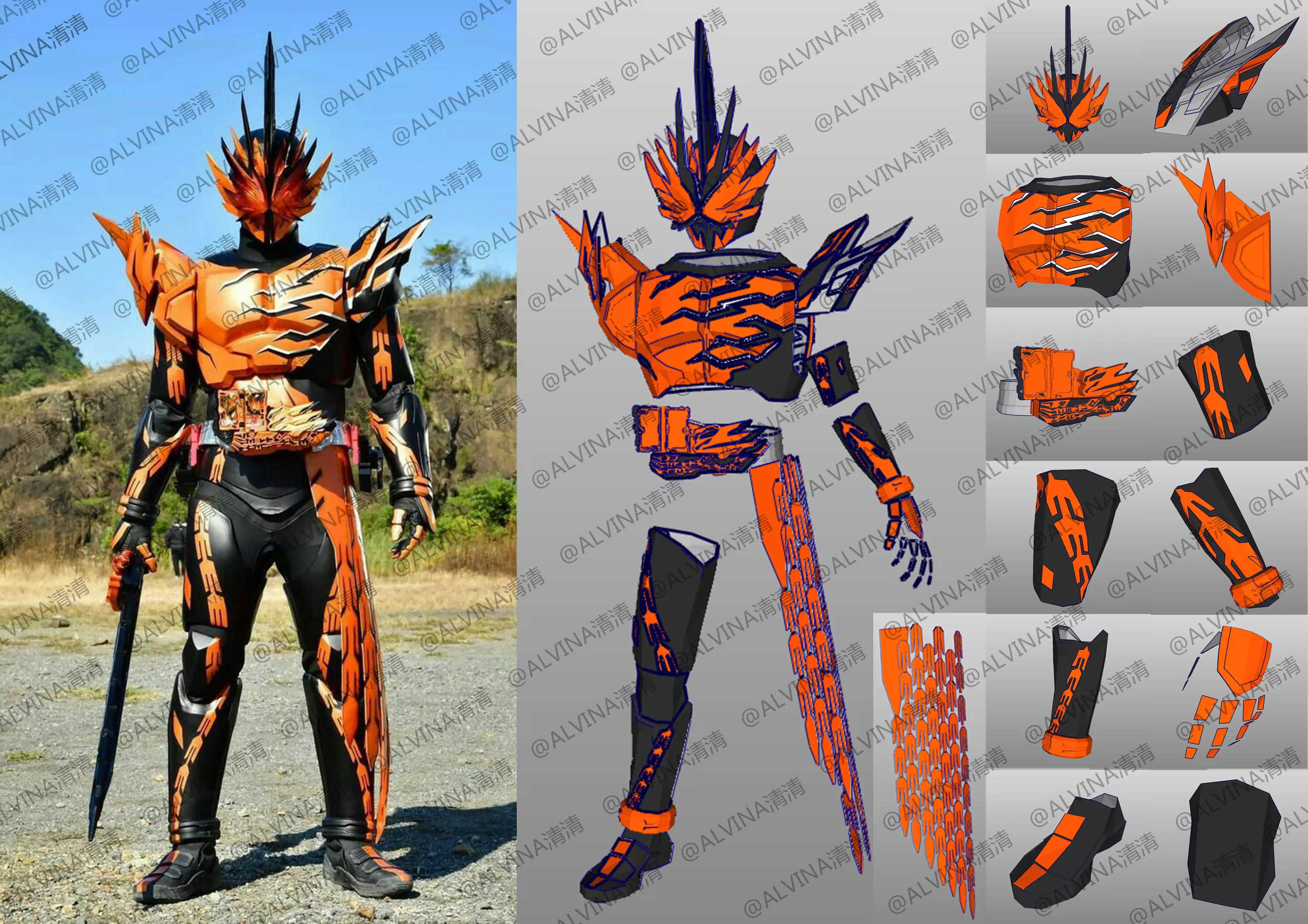 Kamen Rider Falchion Armor - DIY Cosplay Pepakura Foam Template, PDO file not encrypted! After decompression, you can freely adjust the size and modify the texture!