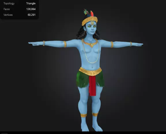 Highly detailed 3D model of Lord Krishna, fully rigged and animated. The model includes optimized topology for smooth performance in games, VR/AR experiences, and cinematic projects. Realistic textures and materials are included, along with pre-set animations for lifelike movement. Compatible with major 3D software and game engines. Ideal for use in cultural, educational, and artistic productions. Comes with 3 seperate animations