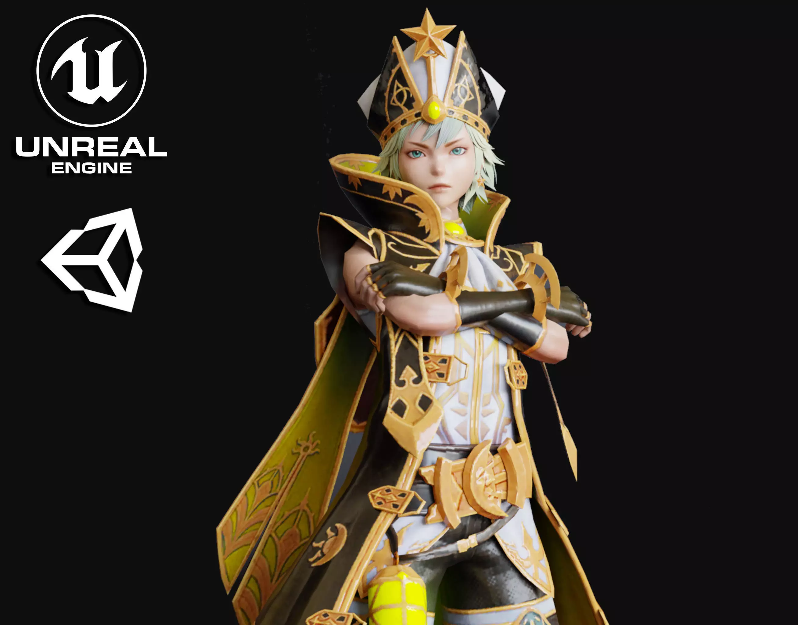 Beautiful low-poly character in 3d model rigged ready for applications in real-time.Sculpting models ZBrush and rigging in 3ds Max.