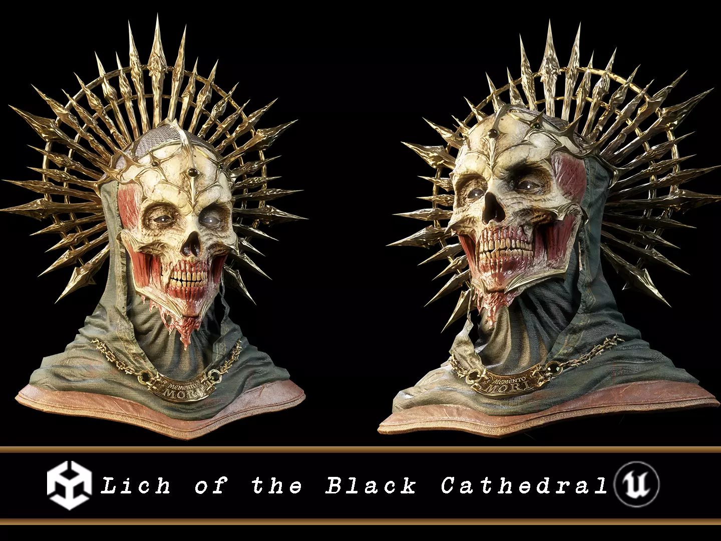 Lich of the Black Cathedral - Lich Skull Bust 3D Model. This model contains the Lich of the Black Cathedral - Lich Skull Bust itself