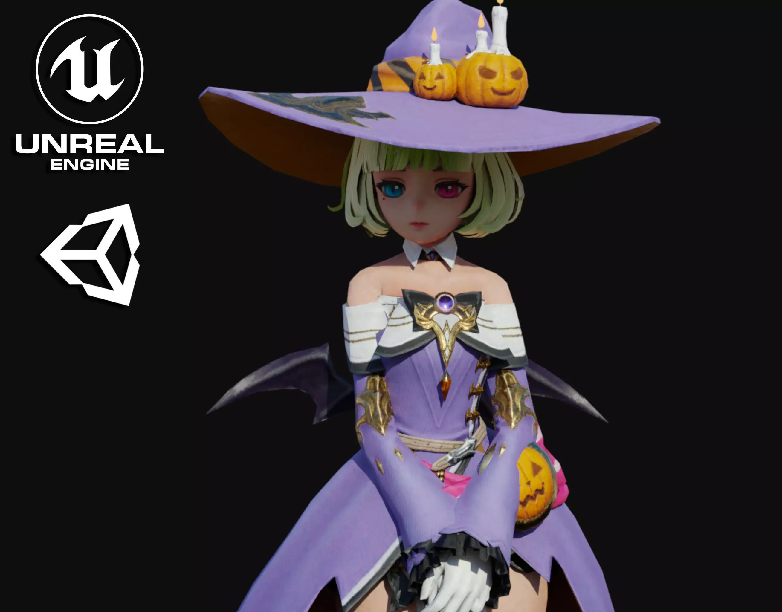Beautiful low-poly character in 3d model rigged ready for applications in real-time.Sculpting models ZBrush and rigging in 3ds Max.