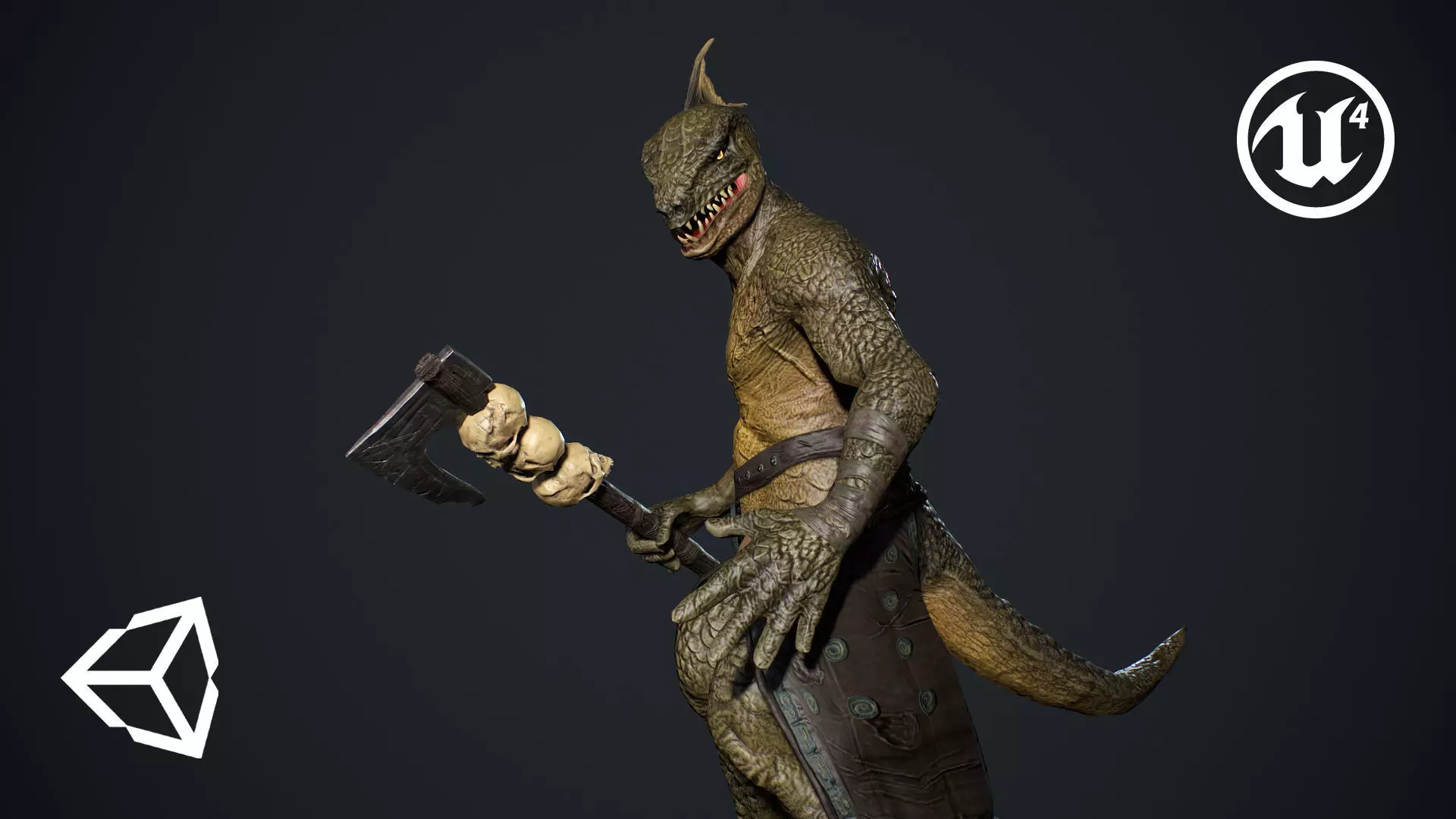 Low poly model of Lizardman Barbarian.