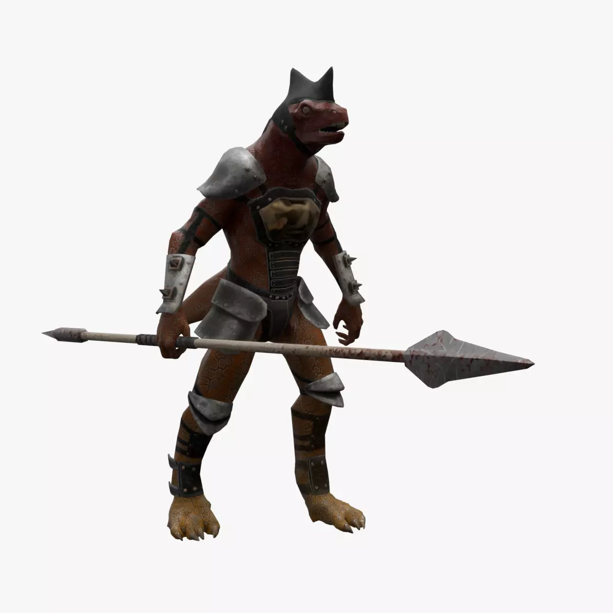 Game-Ready & Optimized: Designed for seamless integration into your projects, ensuring excellent performance without sacrificing visual quality.Unique, Custom Animations (5): Bring your Lizardman to life with a comprehensive set of 5 professionally crafted and original animations. These animations were created specifically for this model, guaranteeing unique and high-quality movement for any encounter:Attack (0-60 frames)Death (0-50 frames)Hit (0-30 frames)Idle (0-60 frames)Walk (0-60 frames)Original Rig: The model features an original, custom-built rig, ensuring optimal deformation and smooth animation control.Multiple Skin Variations (3): Customize your Lizardman's appearance with 3 distinct skin variations included. This allows for diverse armies or unique characters within your game world.Full PBR Texture Sets: Both the Lizardman and his spear come with high-quality PBR textures (2048x2048), ensuring realistic lighting and detail:Lizardman Textures:Skin3_LizardMan_Albedo.tga (Base Color)Skin3_LizardMan_Metalness.tga (Metallic)Skin3_LizardMan_Roughness.tga (Roughness)Skin3_LizardMan_normal_map.tga (Normal)Spear Textures:Spear_albedo.png (Base Color)Spear_metalness.png (Metallic)Spear_roughness.png (Roughness)Spear_normal.png (Normal)