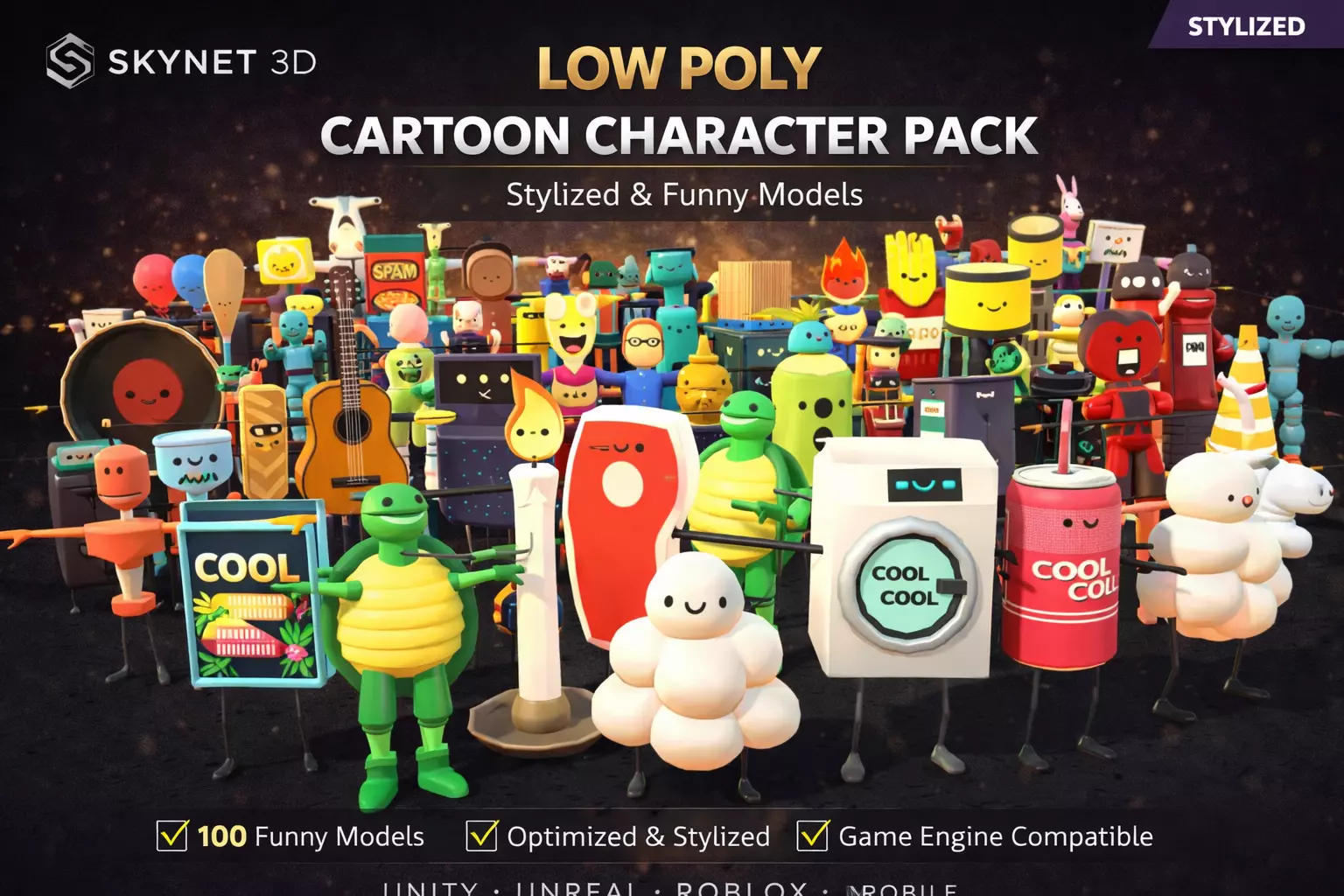 This pack includes a large collection of unique stylized characters with creative designs and fun personalities perfect for games mobile projects and stylized environments